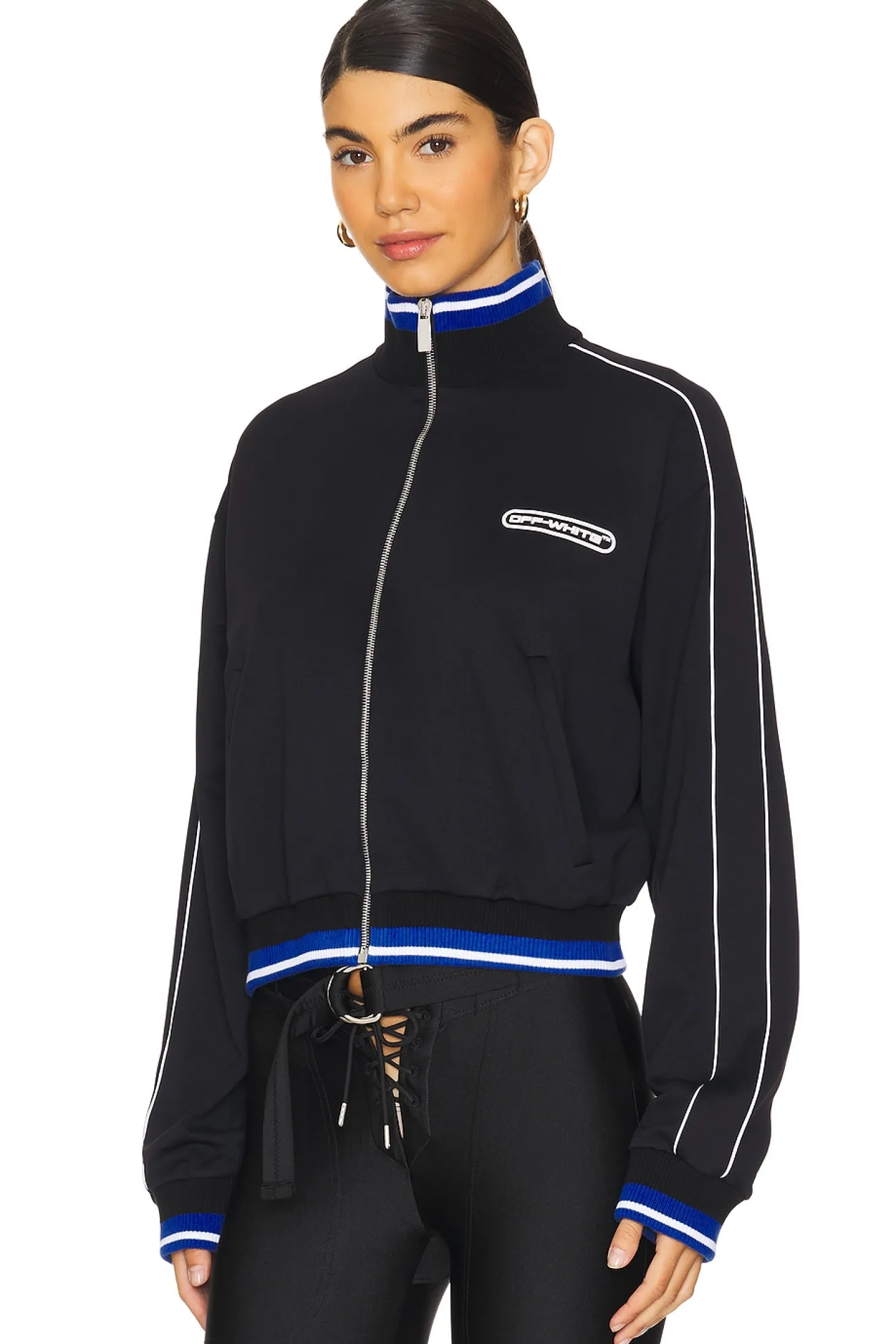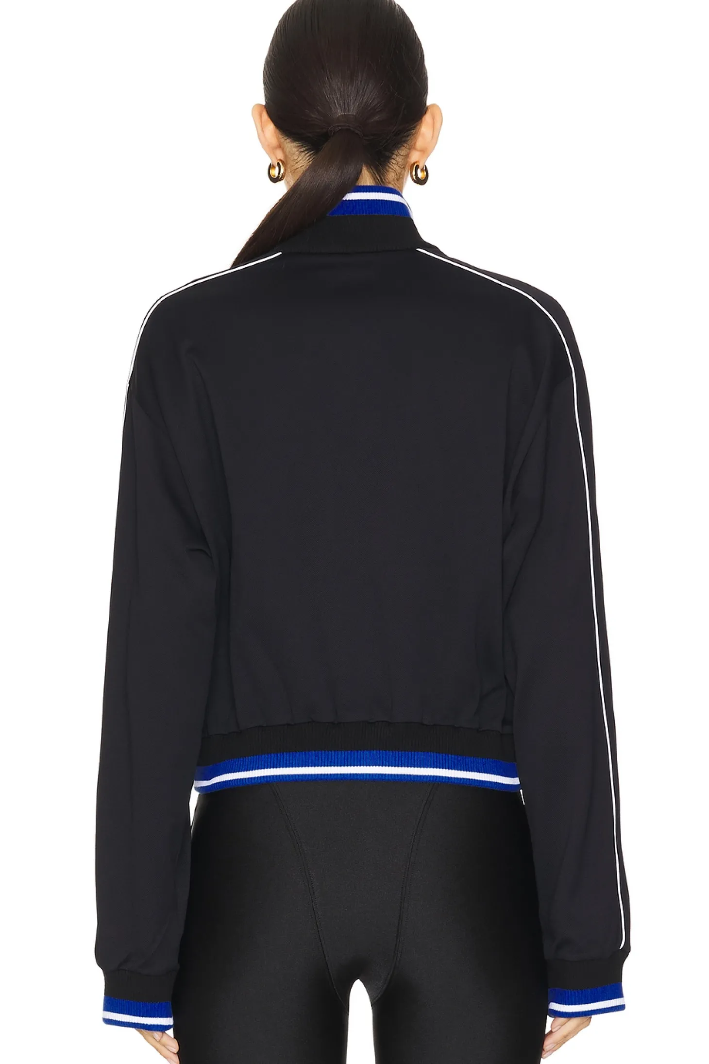 95% polyamide 5% elastane.Made in Italy.Machine wash.Front zipper closure.Side pockets.Ribbed cuffs, hem and neckline.Midweight ponte fabric
