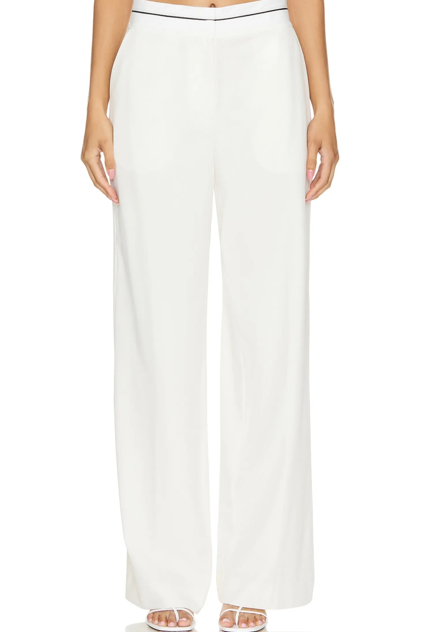 Self: 96% polyester 4% spandex Lining: 55% viscose 45% polyester.Made in China.Dry clean only.Zip fly with hook and bar closure.4-pocket design.Front pintuck detail.Lightweight suiting fabric Item not sold as a set.21" at the knee and 21" at the leg opening