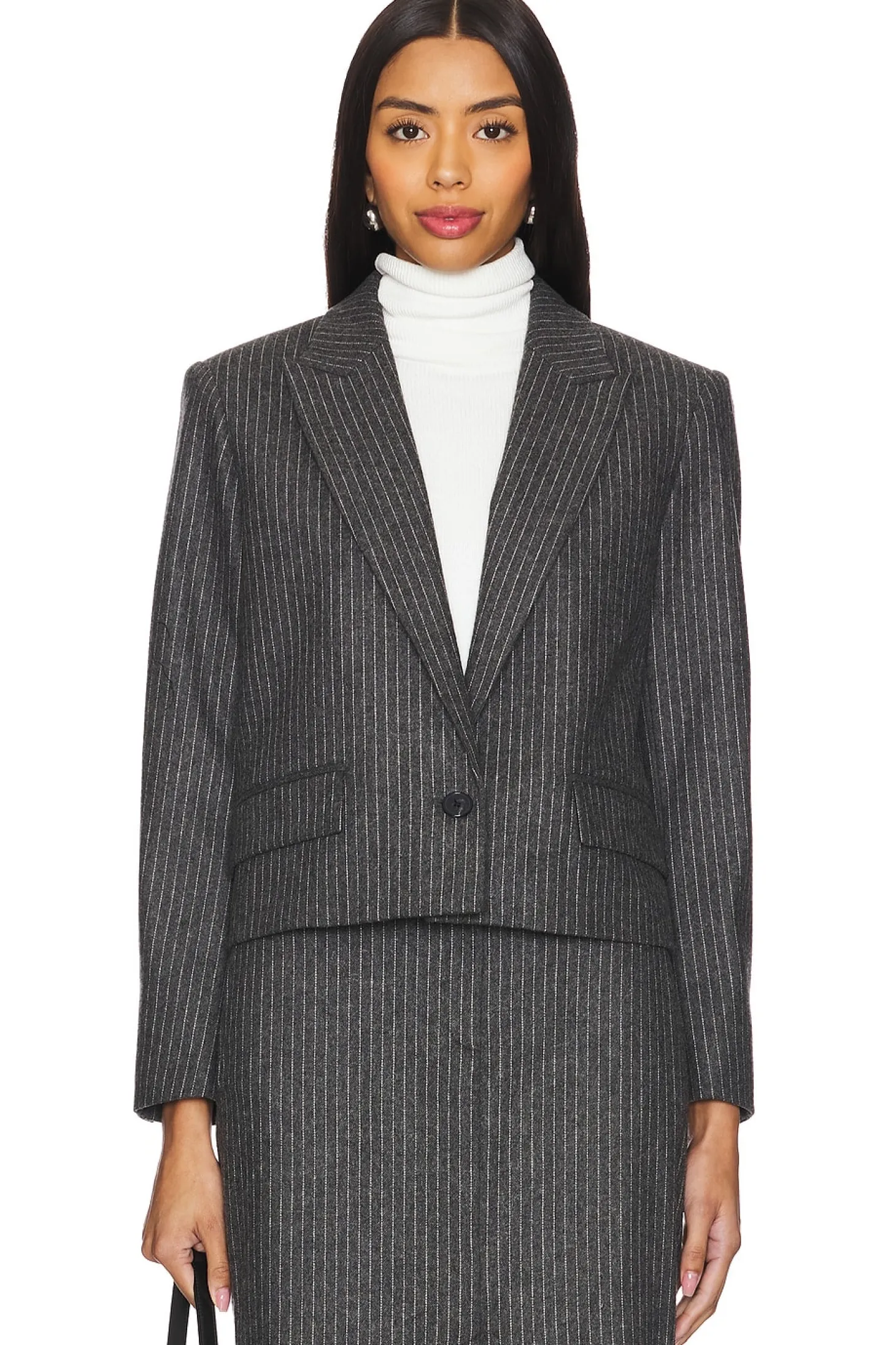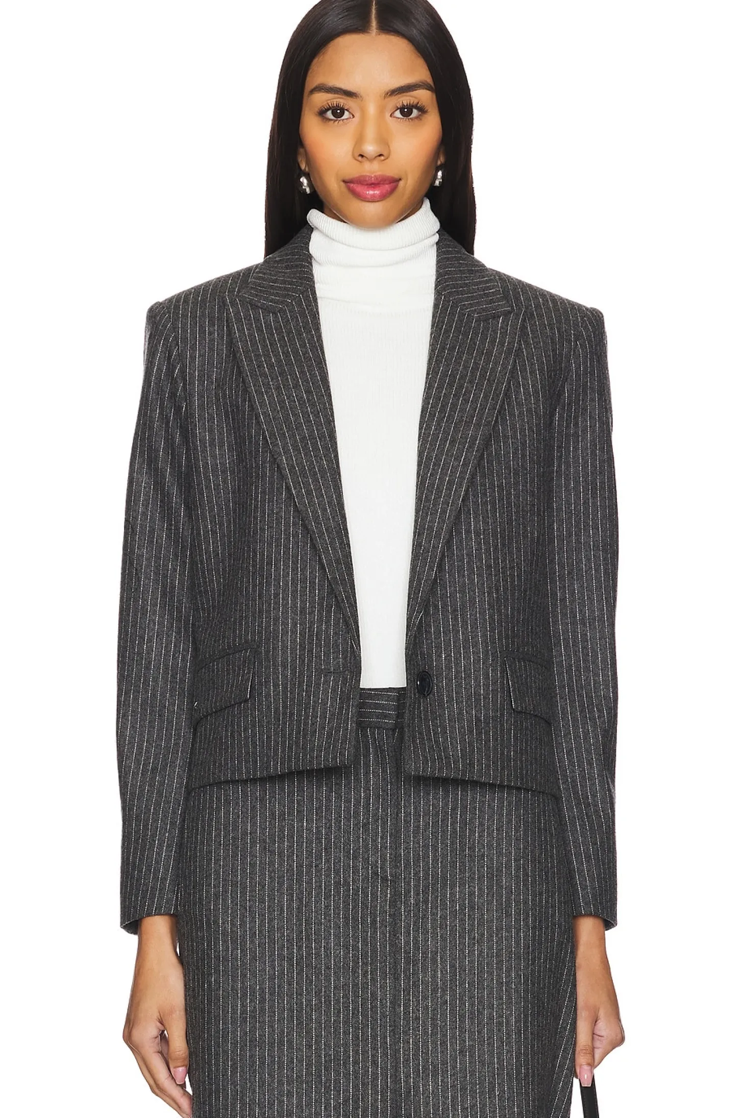 Self: 50% wool 38% polyester 12% viscose Lining: 100% viscose.Made in Tunisia.Dry clean only.Front button closure.Front faux flap pockets and button cuffs.Heavyweight gabardine fabric with padded shoulders and notched lapel collar Item not sold as a set