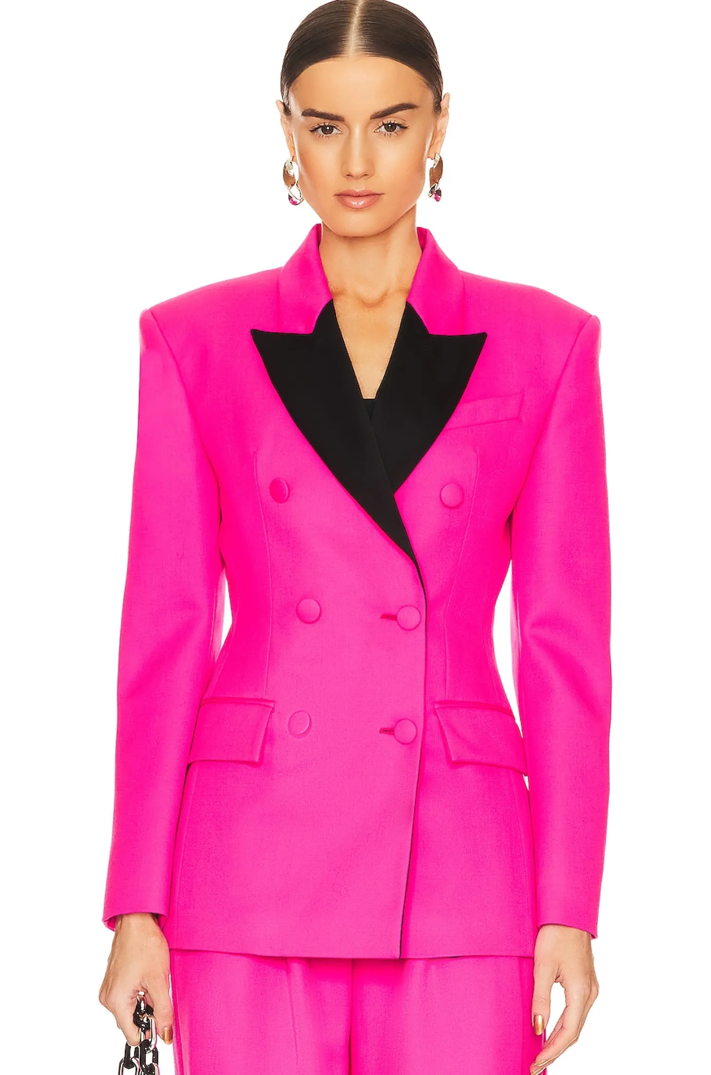 Self: 100% virgin wool Lining: 100% cupro.Made in Slovenia.Dry clean only.Double breasted front button closure.Padded shoulders.Side flap pockets.Buttoned cuffs.Suiting fabric Item not sold as a set