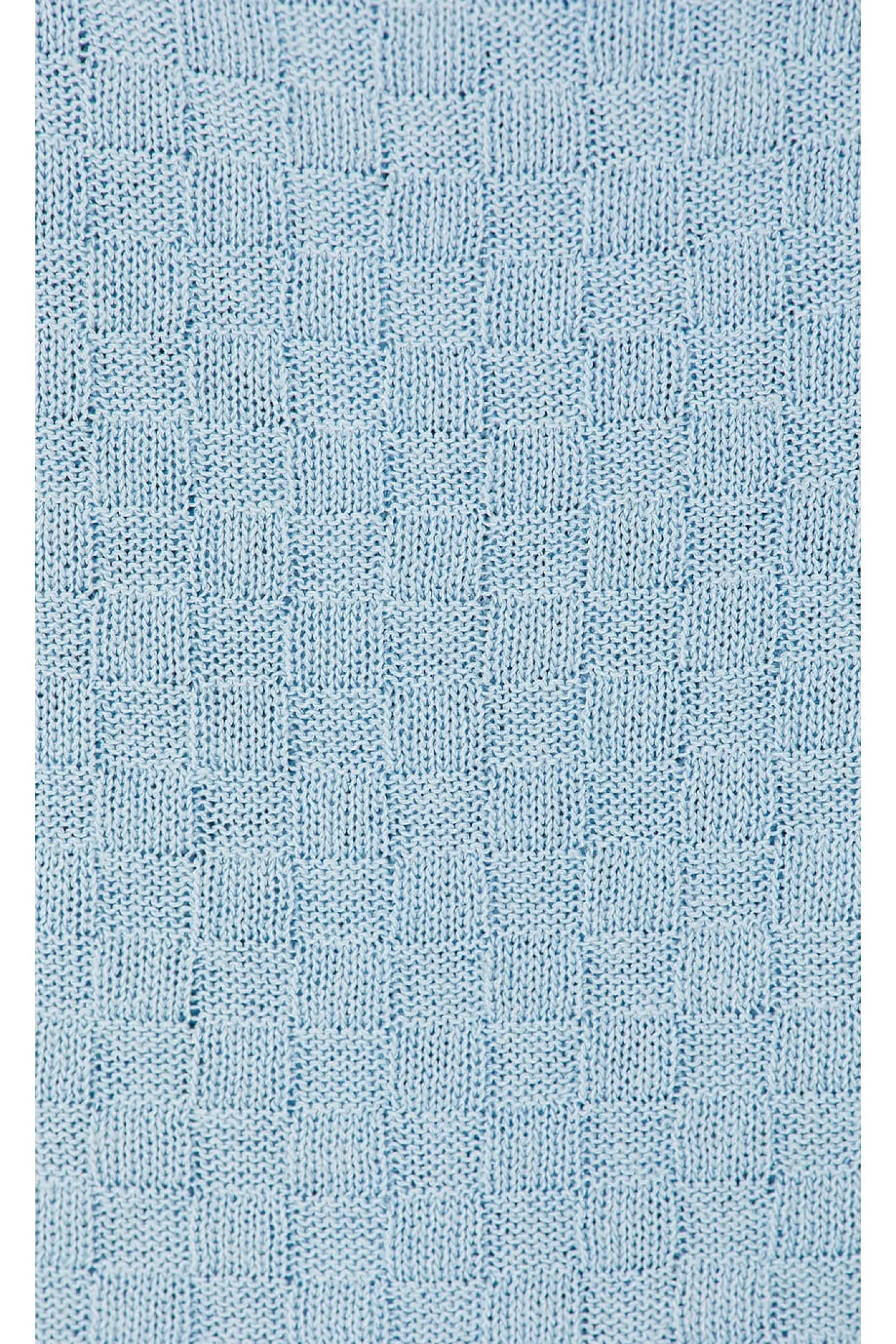 47% viscose 38% cotton 15% linen.Made in China.Dry clean only.Partial front button closure.Ribbed trim.Lightweight knit fabric.Item not sold as a set