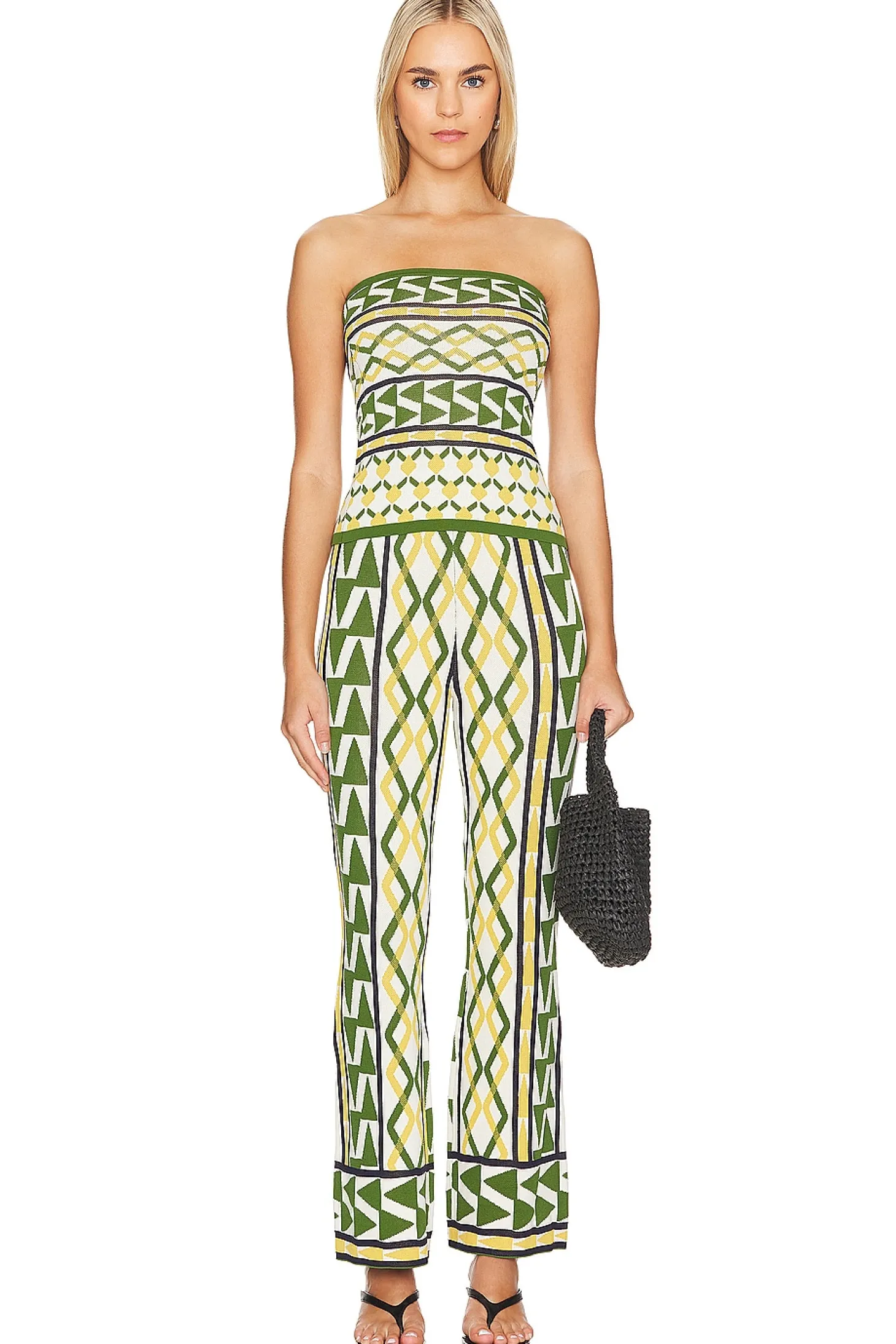 74% viscose 25% polyamide 1% spandex.Made in China.Dry clean only.Lightweight jacquard fabric.Item not sold as a set