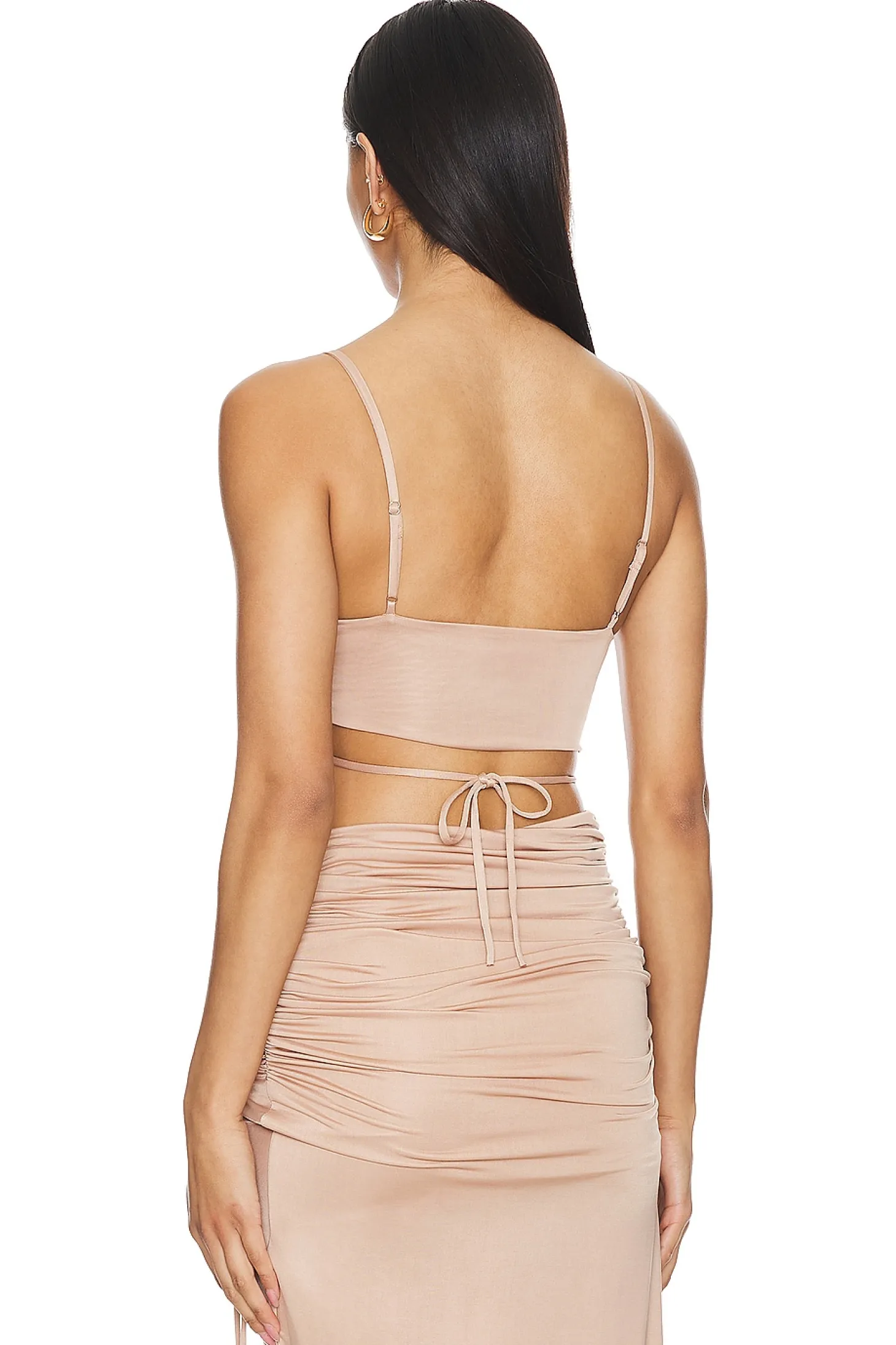 95% polyester 5% spandex.Made in China.Dry clean only.Wraparound waist tie.Adjustable shoulder straps.Jersey fabric.Item not sold as a set