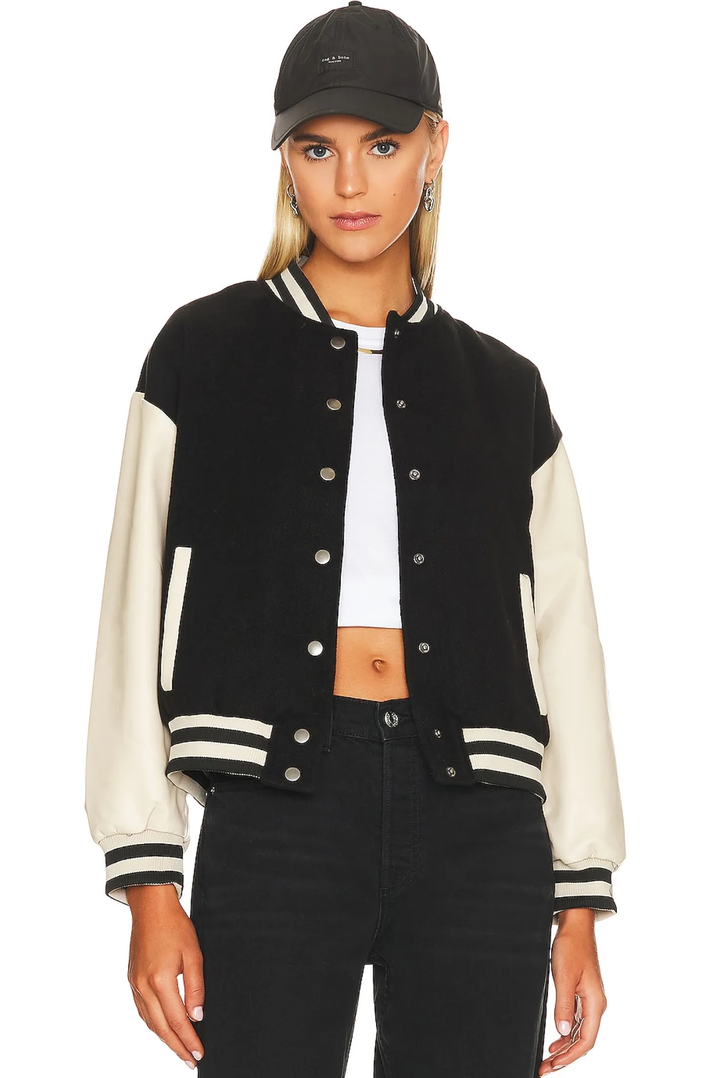 Self: 94% polyester 4% rayon 2% elastane Faux Leather & Lining: 100% polyester.Made in China.Spot clean only.Front button closure.Side slant pockets.Faux leather sleeves
