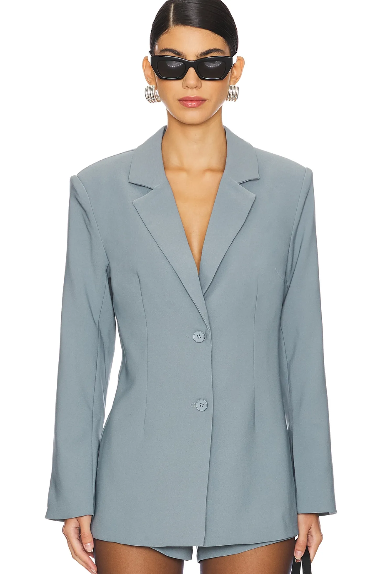 Self: 92% polyester 8% elastane Lining: 95% polyester 5% elastane.Made in China.Hand wash.Front button closure.Padded shoulders Notched lapel collar.Midweight suit fabric