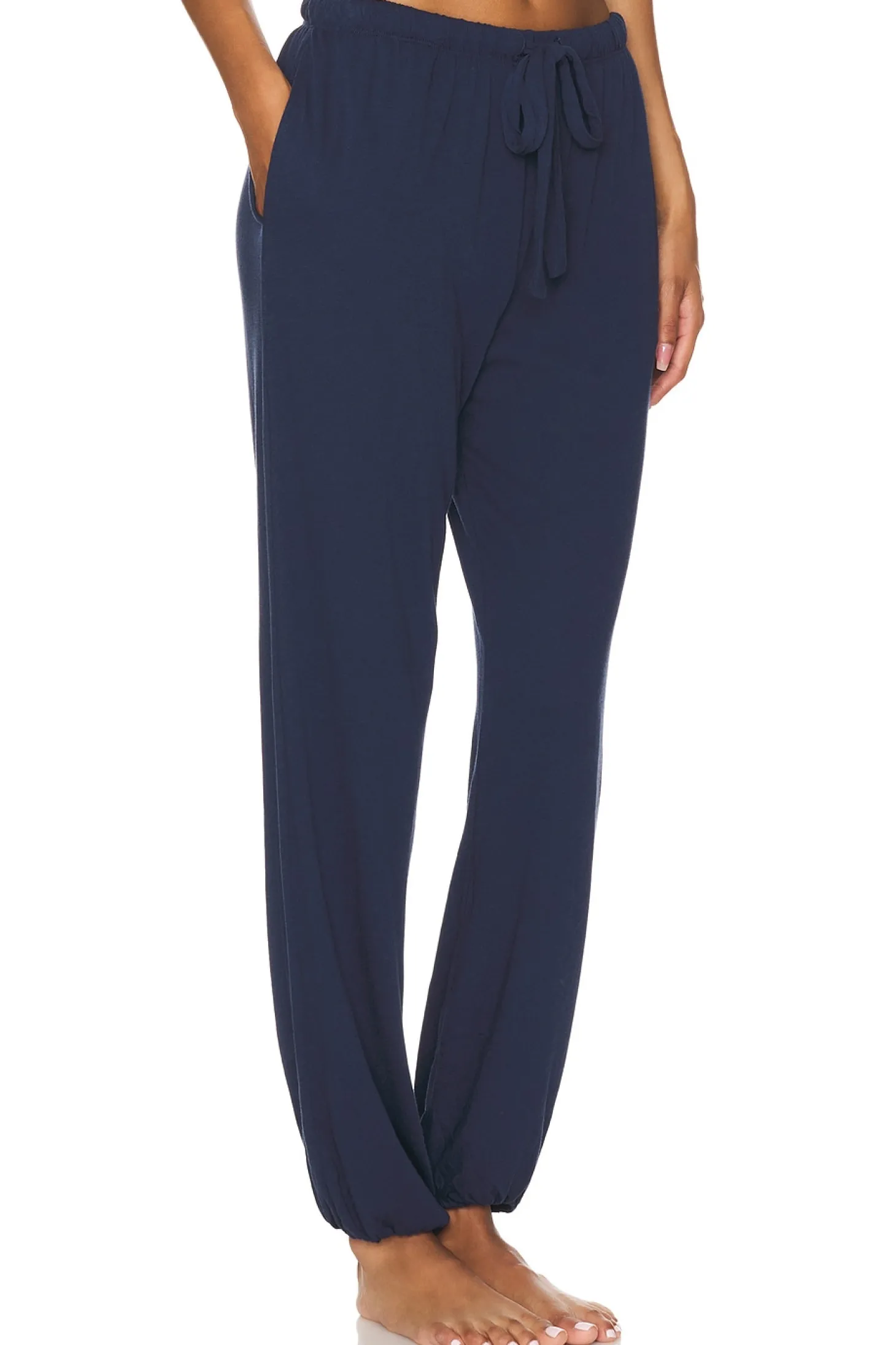 70% cotton 30% viscose.Made in China.Machine wash.Drawstring closure.Side seam pockets.Lightweight jersey fabric.Item not sold as a set.17" at the knee narrows to 12" at the leg opening