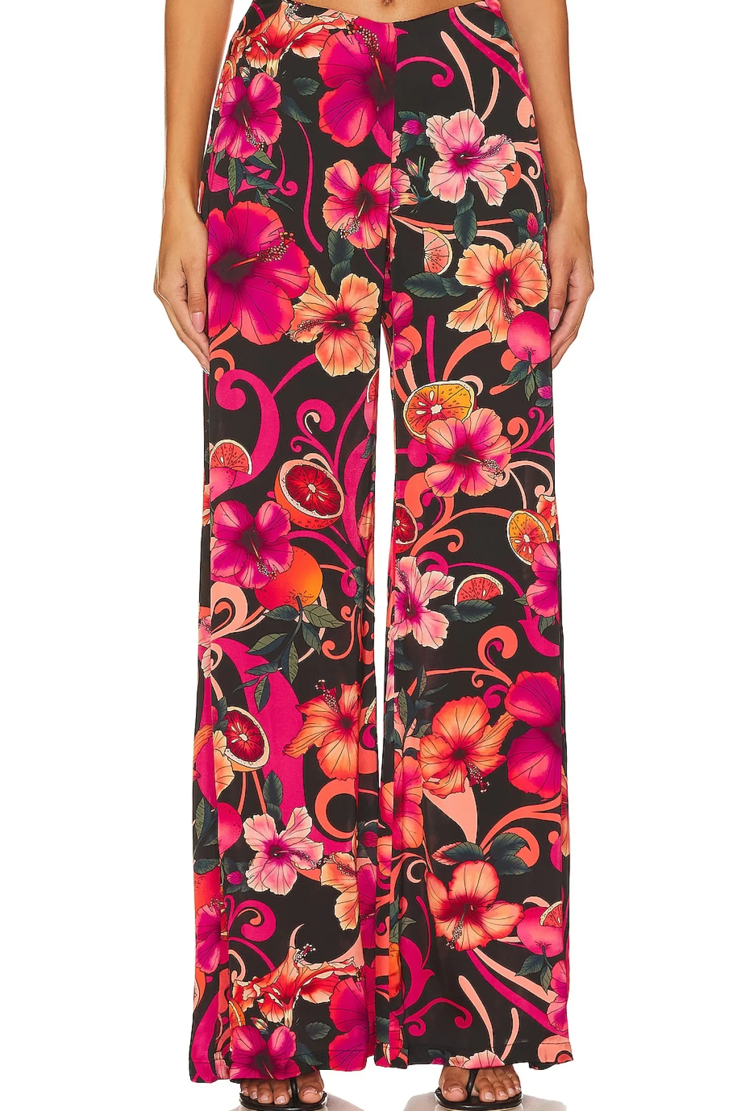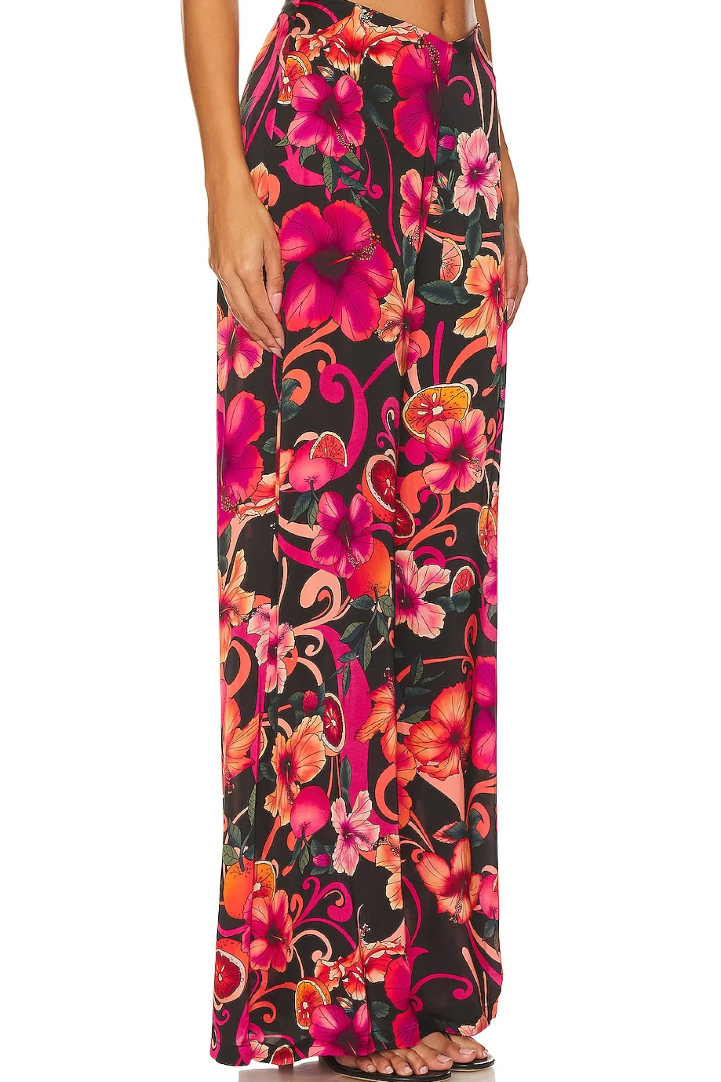 100% polyester.Made in Indonesia.Hand wash.Hidden side zipper closure.Lightweight satin fabric.Item not sold as a set.24" at the knee breaks to 31" at the leg opening
