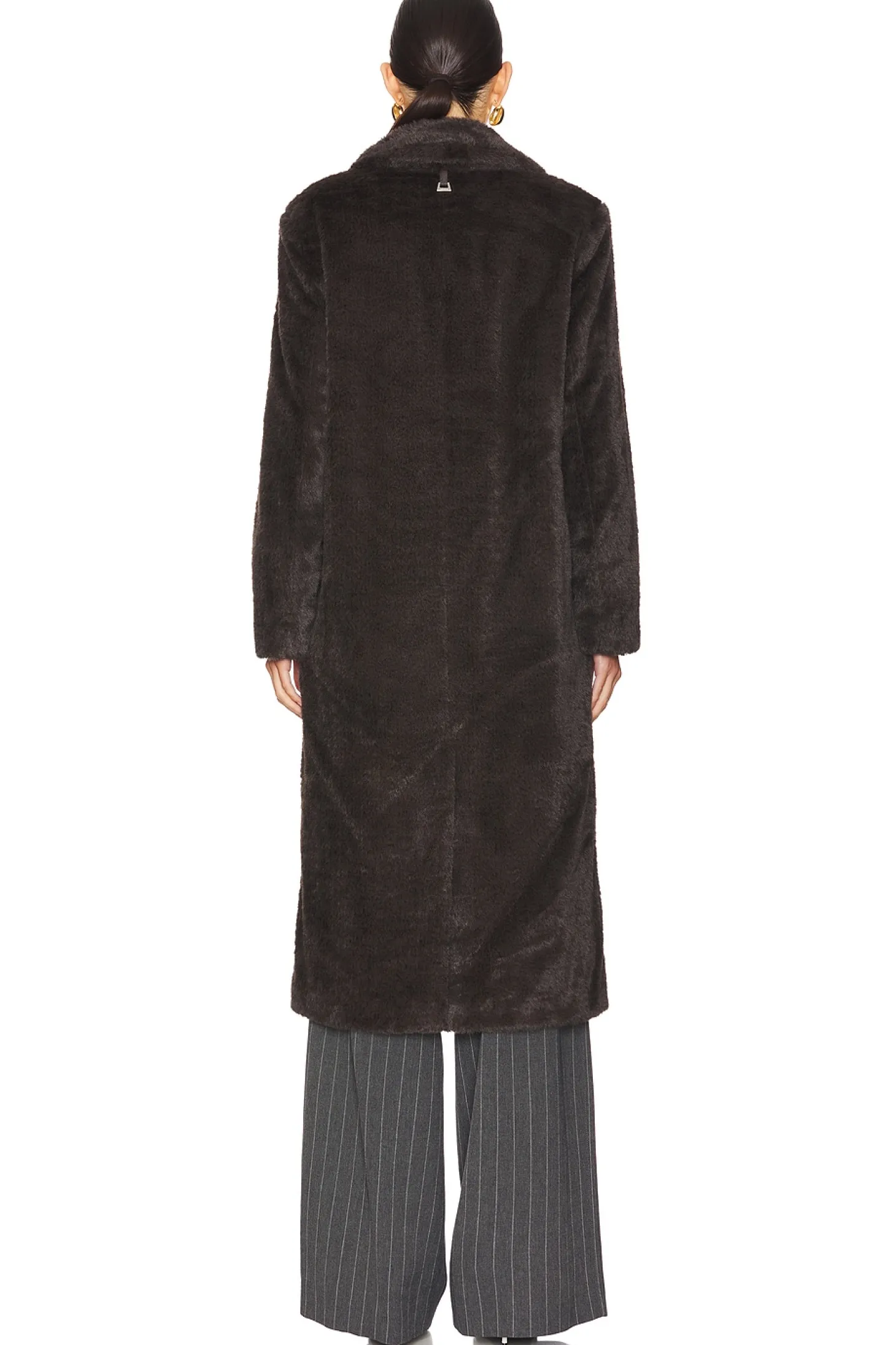 Self: 100% polyester Lining: 100% recycled polyester.Made in China.Dry clean only.Front button closure.Front slip pockets.Heavyweight faux fur fabric with notched lapel collar