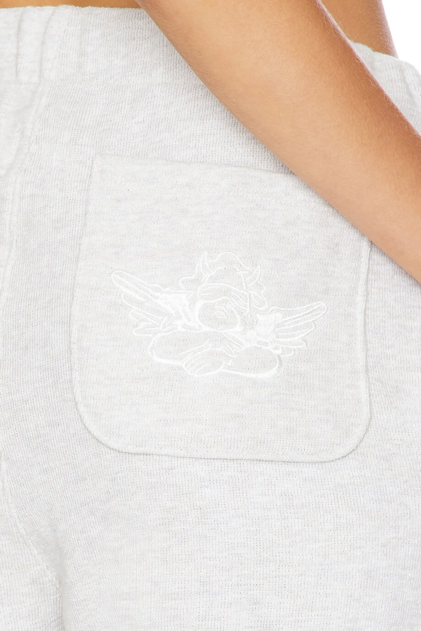 100% cotton.Made in China.Machine wash.Pull-on styling with elastic waistband.3-pocket design.Graphic detail on front and back.Item not sold as a set.18" at the knee narrows to 12" at the leg opening