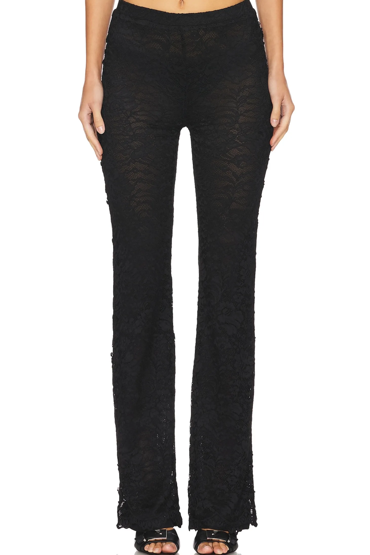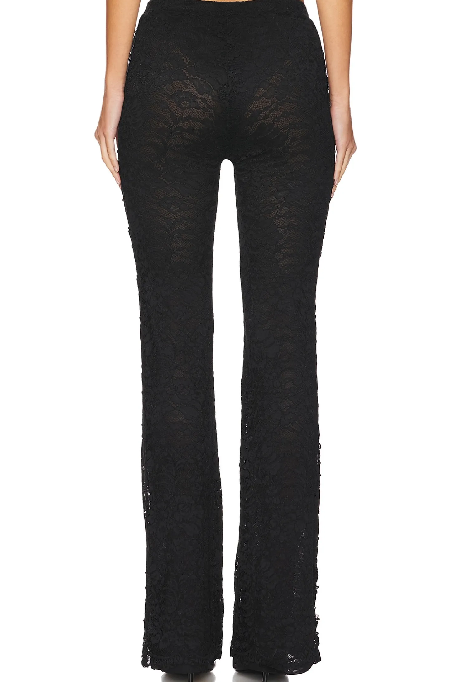 Self: 69% nylon 28% polyester 3% elastane Lining: 92% polyester 8% elastane.Made in China.Hand wash.Pull-on styling with elastic waistband.High-waisted design.Lace fabric.15" at the knee breaks to 20" at the leg opening