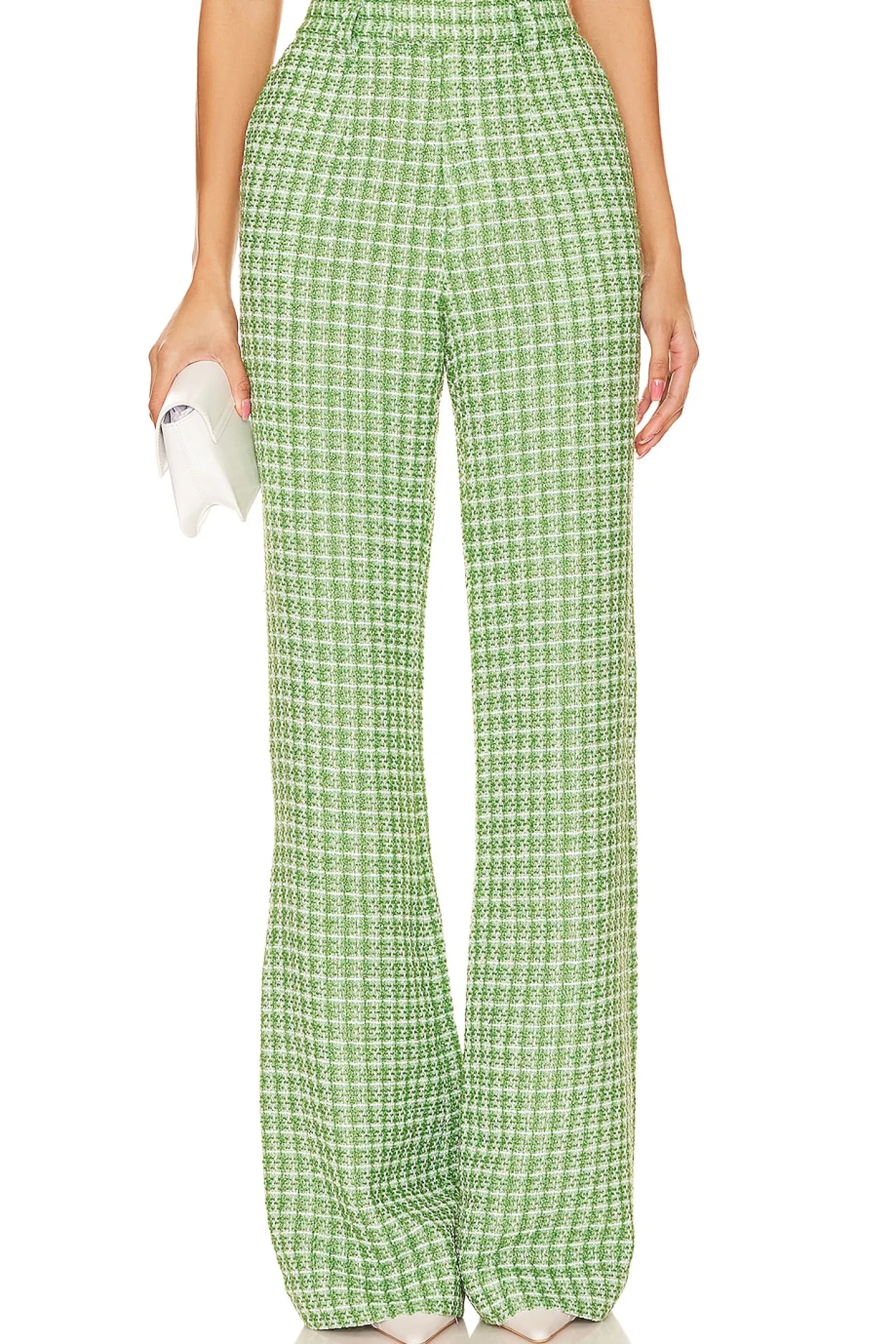Shell: 100% polyester Lining: 100% polyester .Made in China.Hand wash recommended.Zip fly with hook and bar closure.Side slant pockets.Tweed fabric.Item not sold as a set.18" at the knee breaks to 22" at the leg opening