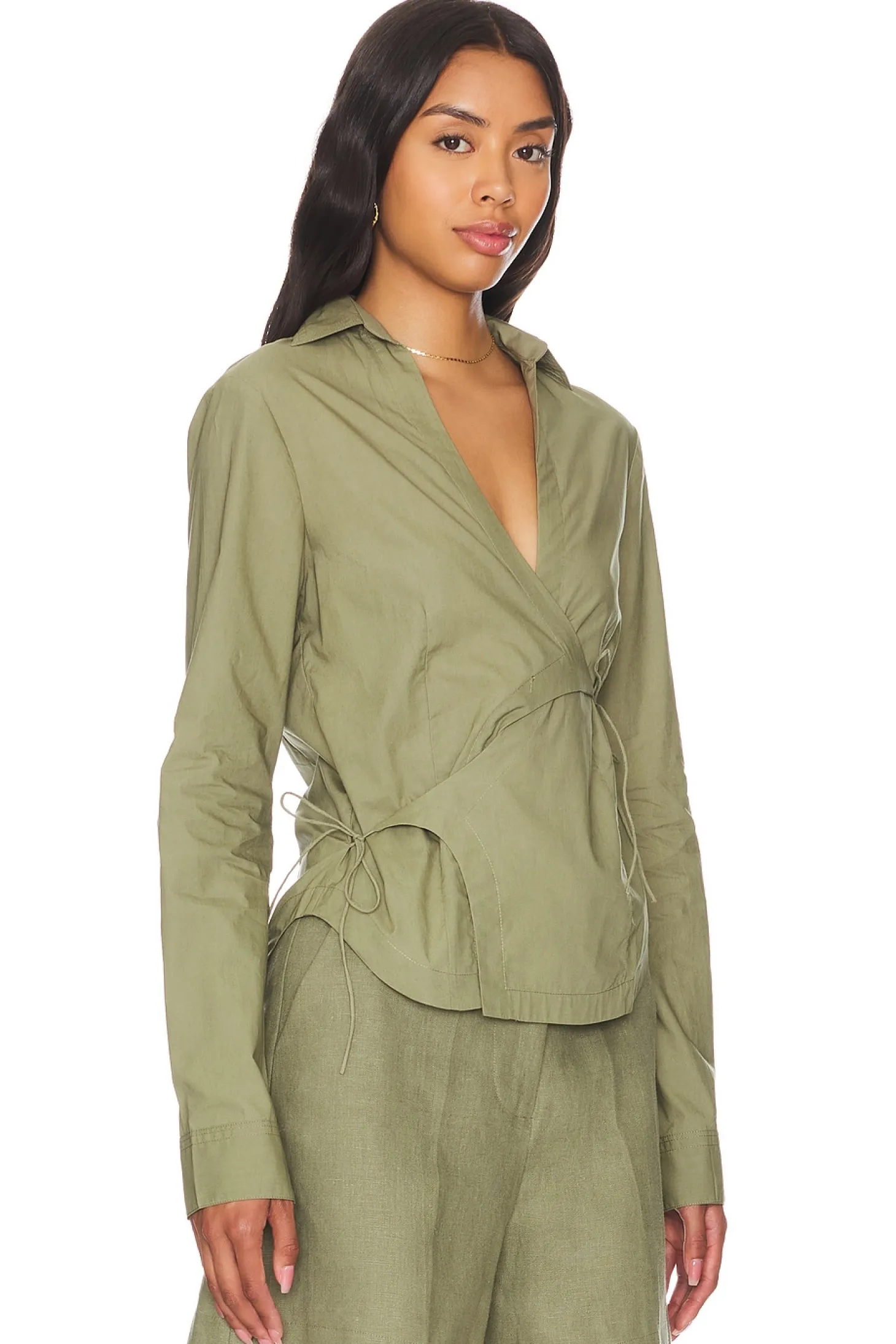100% cotton.Made in Indonesia.Hand wash.Surplice front with tie closure.Buttoned cuffs.Item not sold as set.Poplin fabric