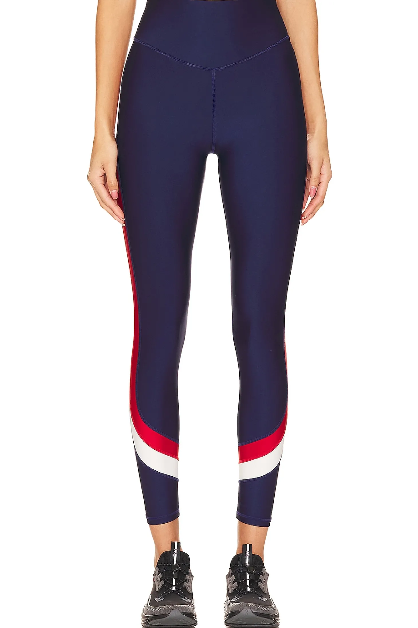 Self: 74% recycled polyamide 26% elastane Contrast Fabric: 72% polyester 28% elastane.Made in China.Machine wash.Pull-on styling with wide stretch waistband.Item not sold as a set.10" at the knee narrows to 8" at the leg opening