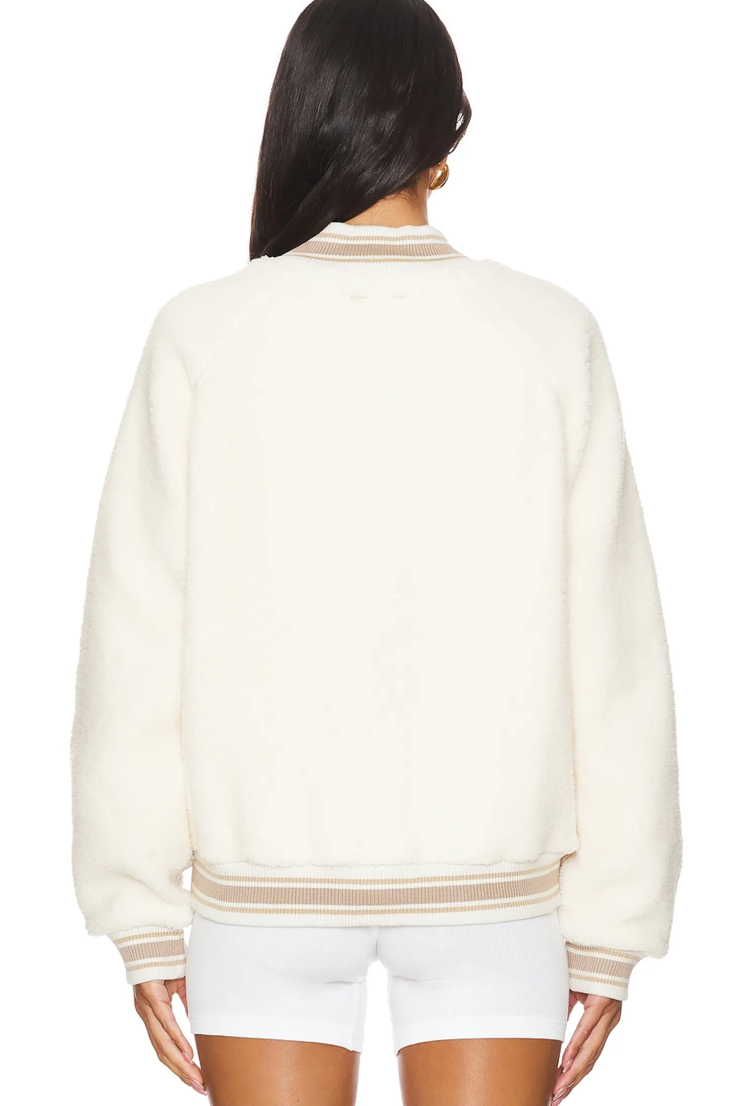 Self: 100% recycled polyester Lining: 100% cotton Contrast Fabric: 80% cotton 18% polyester 2% elastane.Made in China.Machine wash.Front button closure.Side slant pockets.Sherpa fabric with ribbed knit trim