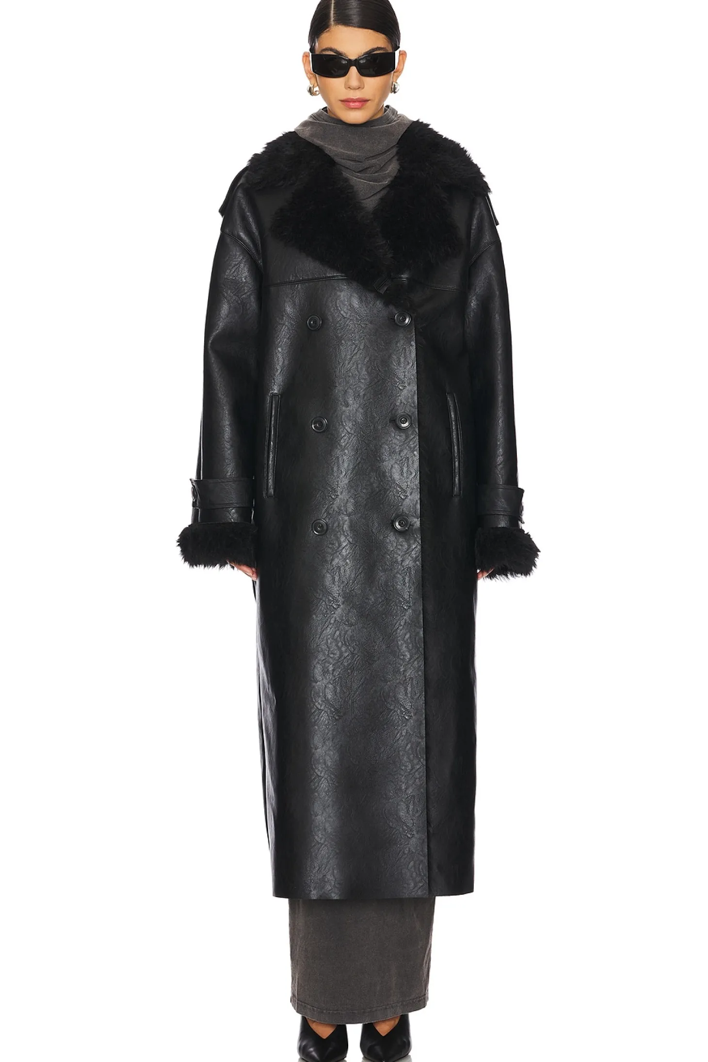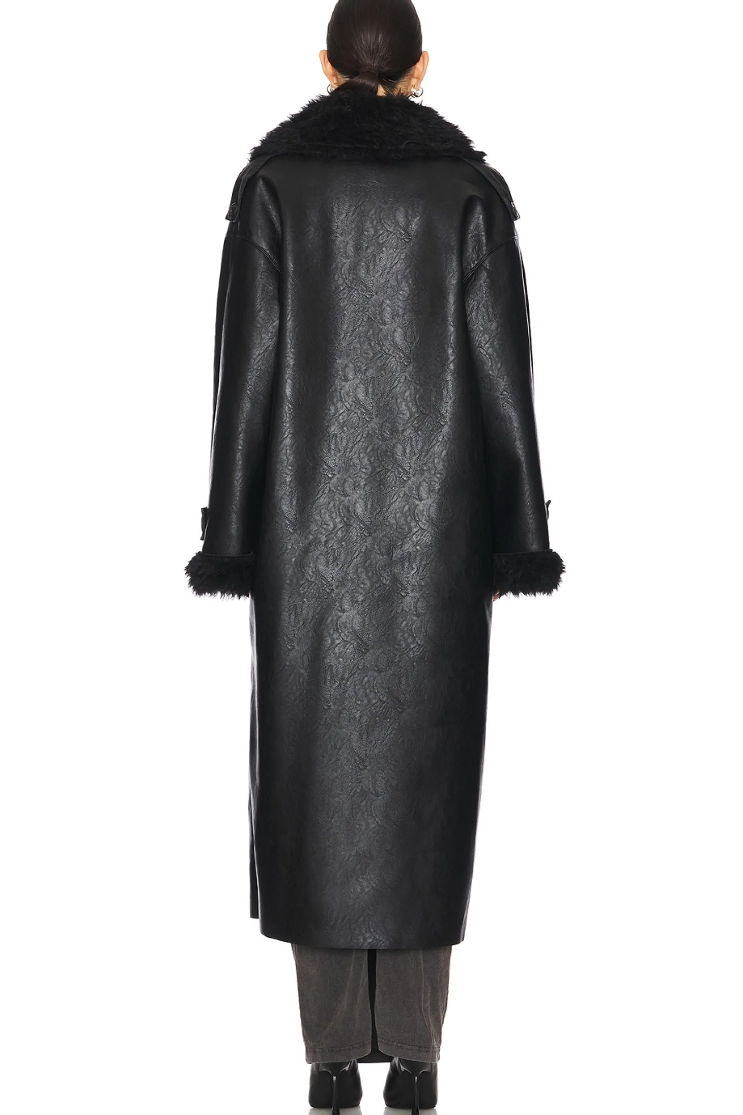 100% polyester.Made in Italy.Machine wash.Front button closure.Front slant welt pockets Notched lapel collar.Heavyweight sherpa fabric