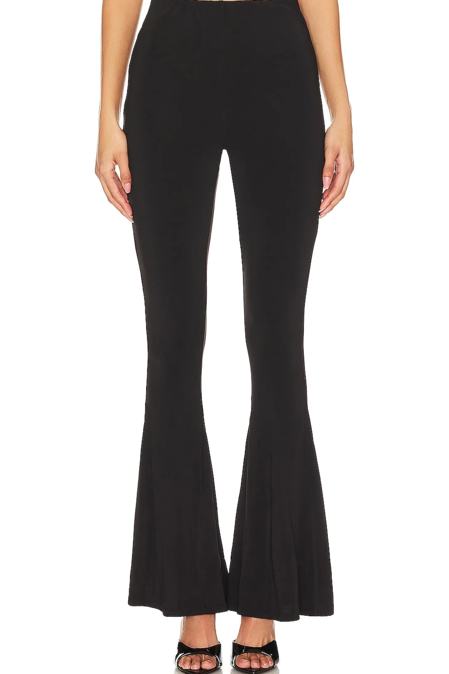 Introducing the Lovers and Friends Bex Pant in Black – these sleek and tailored trousers are a true staple from season to season. Whether paired with a slim bodysuit or elevated with a button-down blouse, this style promises to turn heads with every wear..94% polyester 6% elastane.Made in China.Dry clean only.Hidden back zipper closure.Elastic waistband.Slinky jersey fabric.12" at the knee breaks to 20" at the leg opening