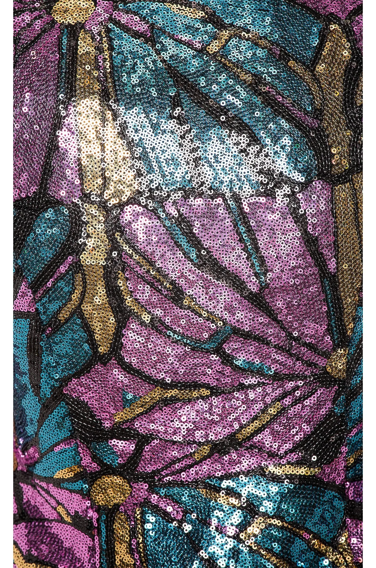 Self: 100% poly Lining & Contrast: 95% poly 5% elastane.Hand wash cold.Front hook and bar closures.Padded shoulders.Side welt pockets.Satin trim.Paillette sequin embellishment throughout.Imported