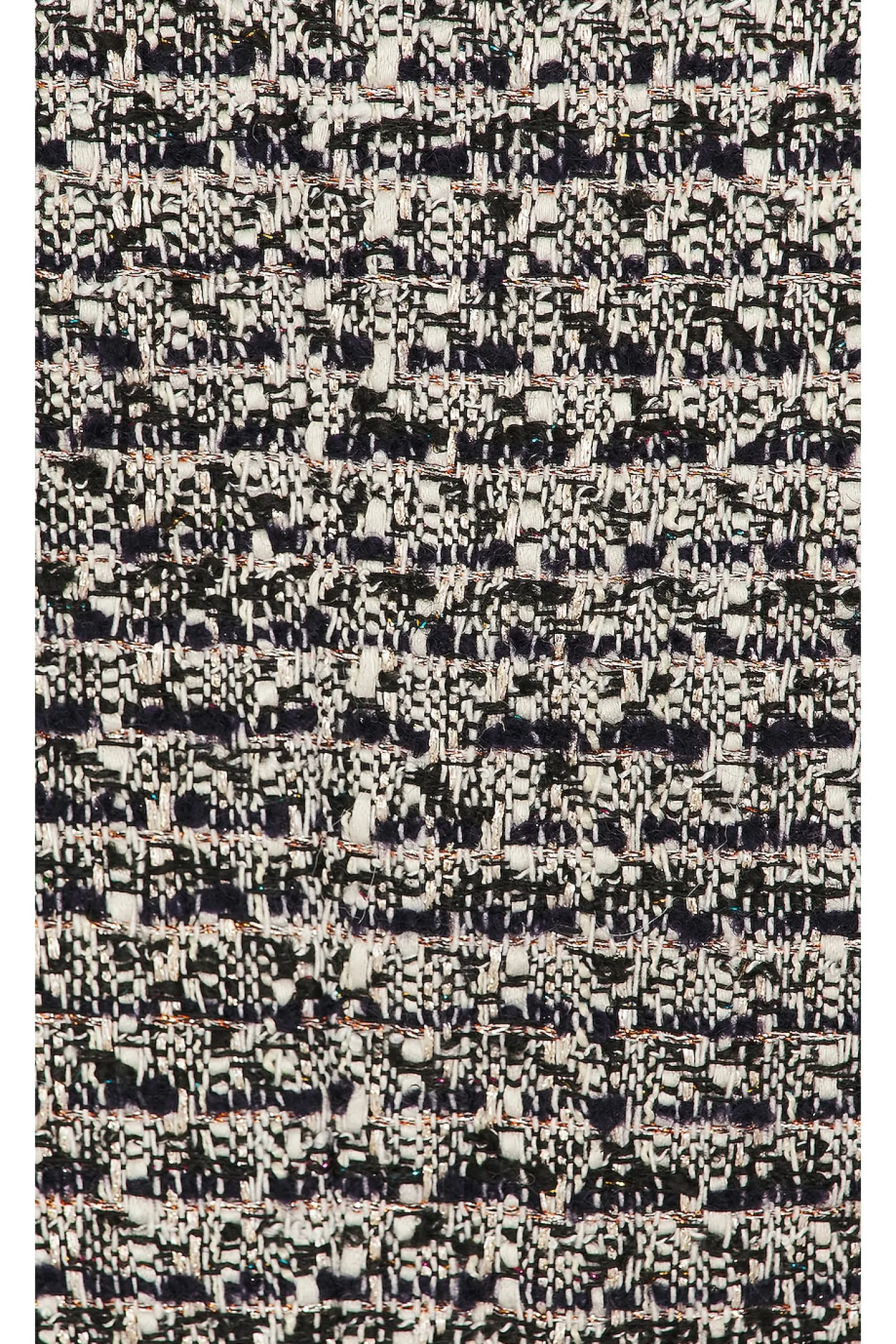 Self: 80% polyester 20% wool Lining: 97% polyester 3% spandex Trim: 100% polyester.Made in China.Dry clean only.Front button closure.Front welt pockets.Midweight tweed fabric