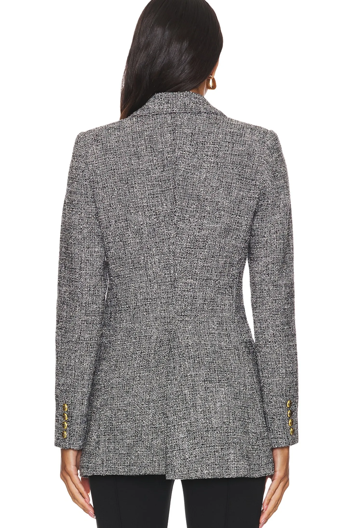 Self: 38% cotton 34% polyester 9% viscose 8% wool 3% silk Lining: 100% nylon.Made in Canada.Dry clean only.Singular front button closure.Padded shoulders.4-pocket styling.Button cuffs.Tweed fabric