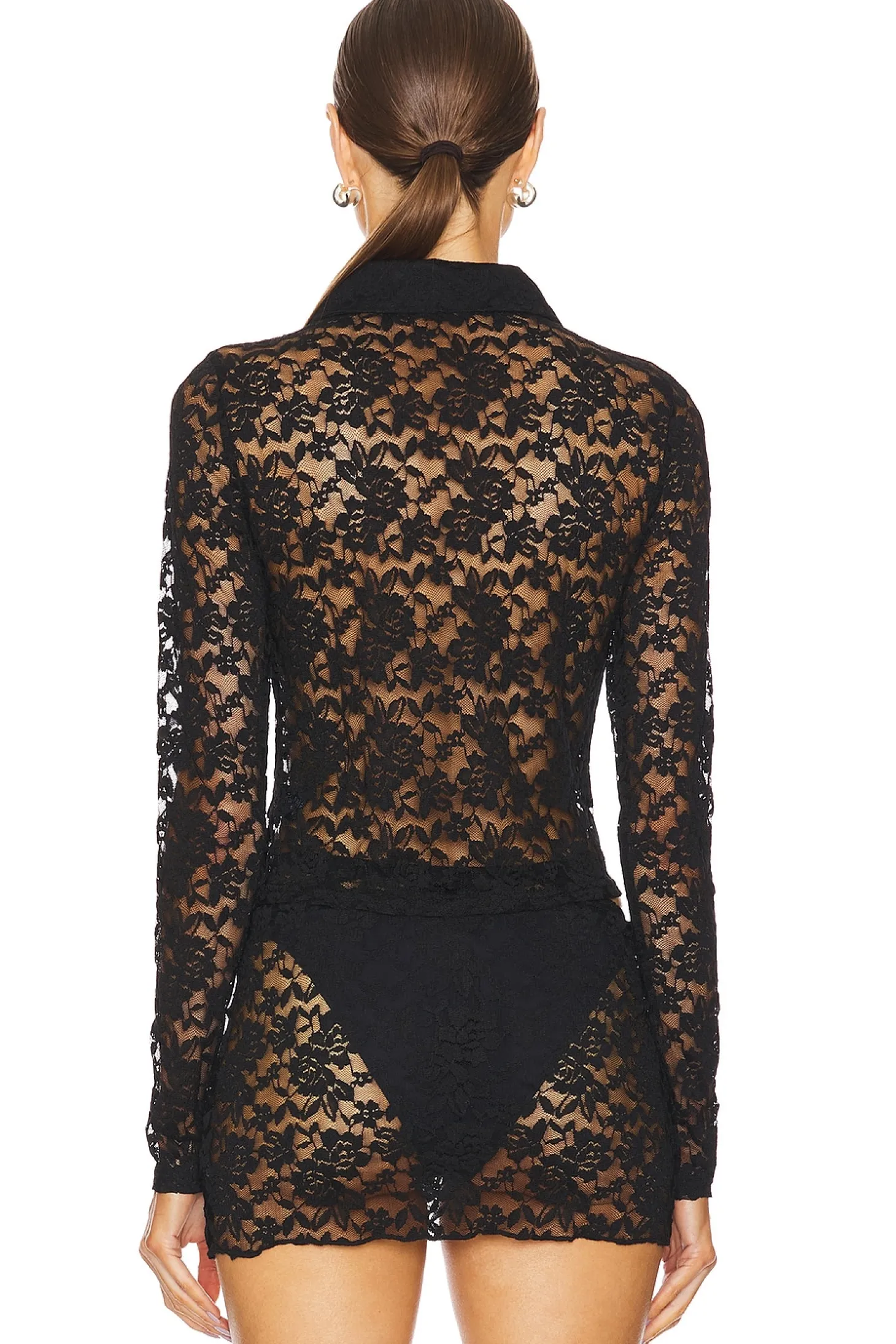 90% nylon 10% elastane.Made in China.Hand wash.Partial front button closure.Item not sold as a set.Garment is intentionally sheer, undergarments will show through. Please note undergarment not included.Item not sold as set