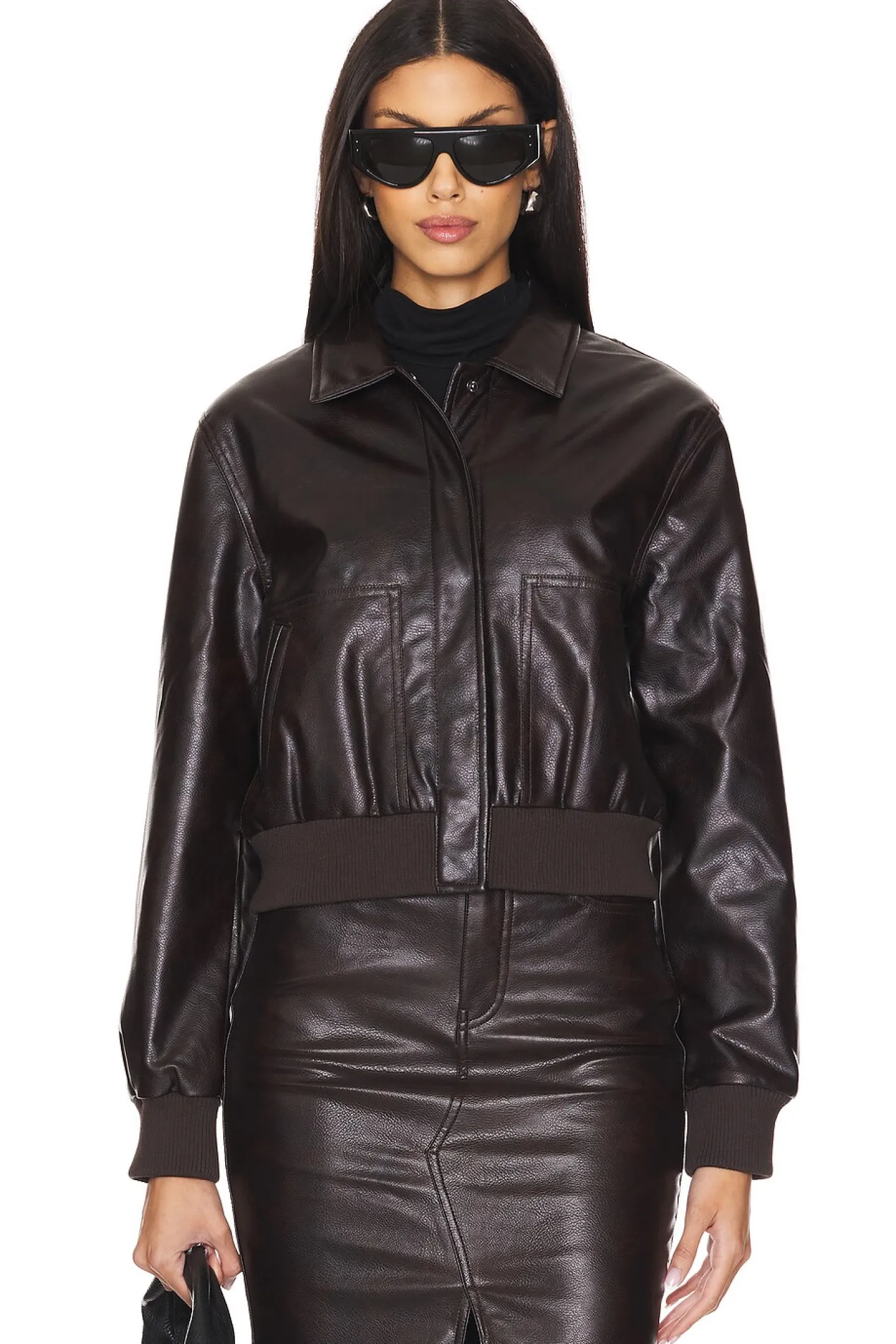Self 1: 100% polyurethane Self 2: 100% polyester Self 3: 95% polyester 5% spandex Lining: 92% polyester 8% spandex.Made in China.Professional leather clean only.Hidden snap button closures.Slant pocket styling