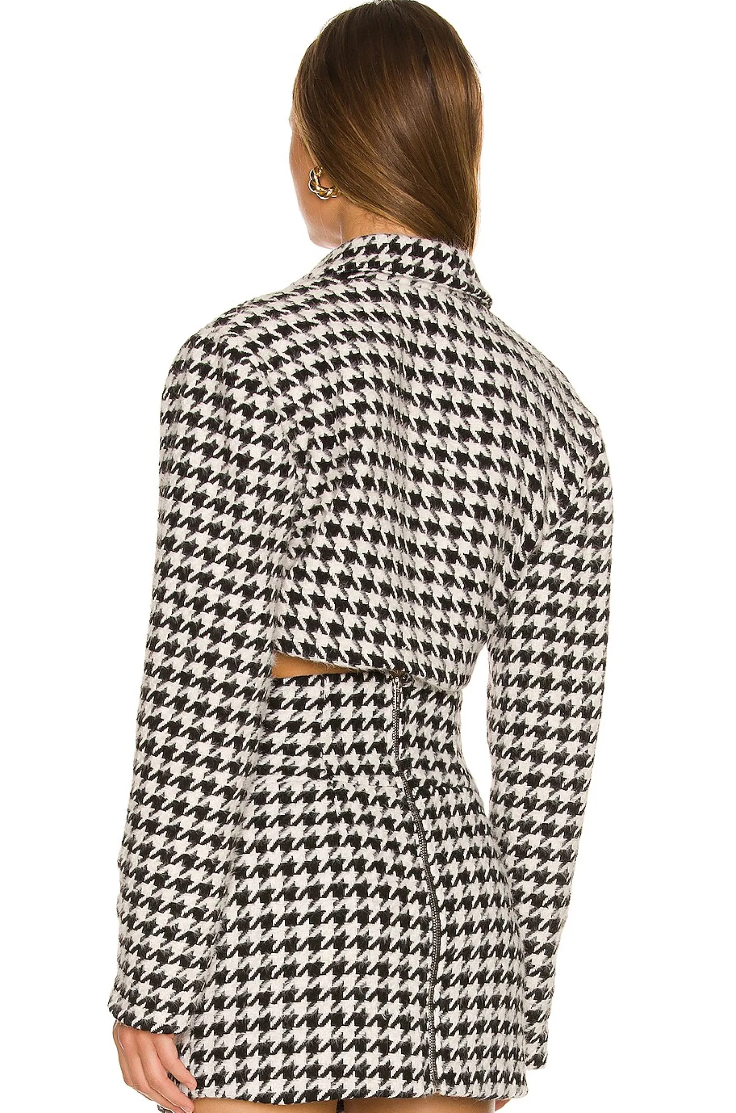 Poly blend.Imported.Dry clean recommended.Front button closure.Front flap pockets.Notched cuffs with faux button closures.Tweed fabric.Item not sold as a set