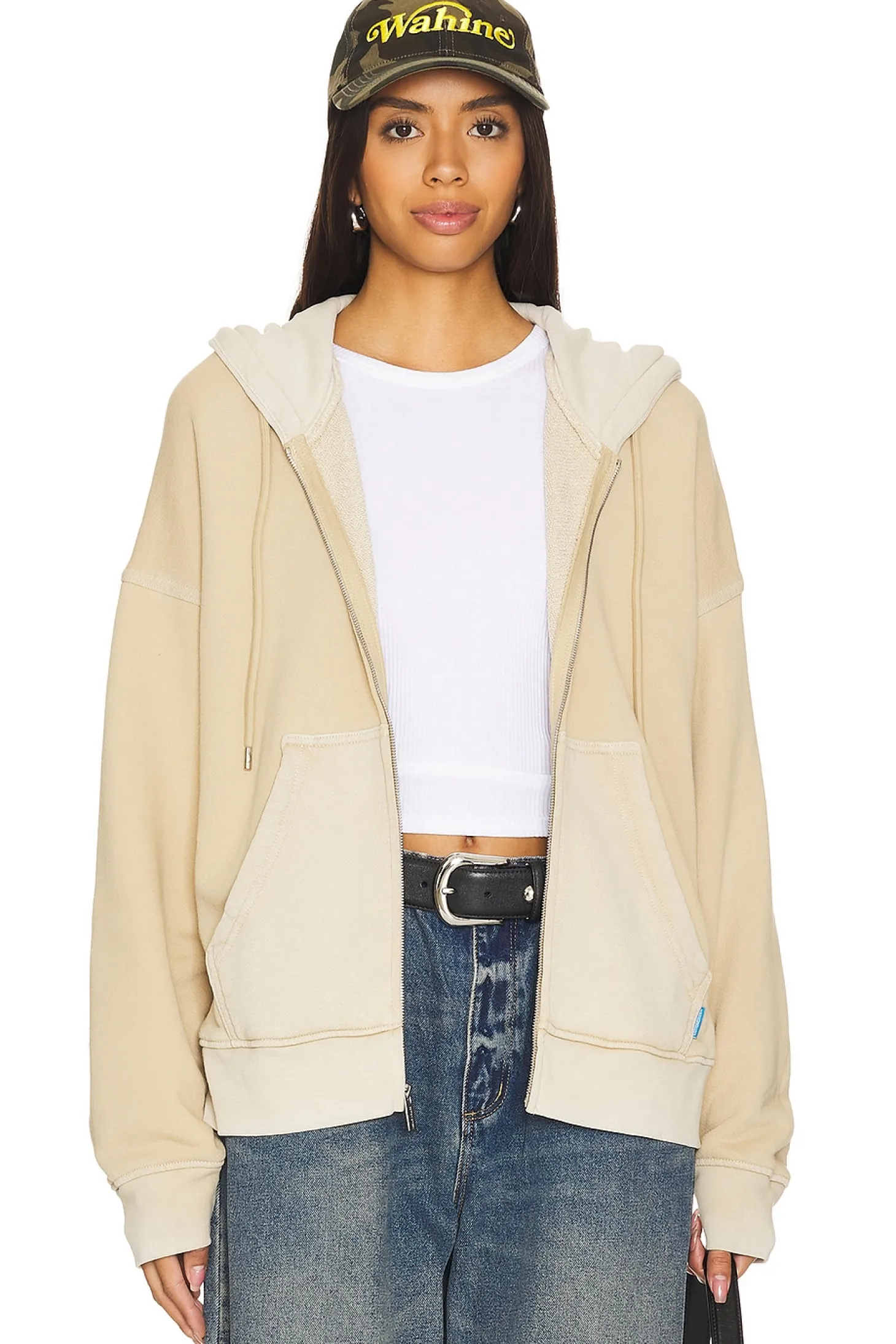 100% cotton.Made USA.Machine wash.Front zipper closure.Dual slant pocket styling.Drawstring hood details