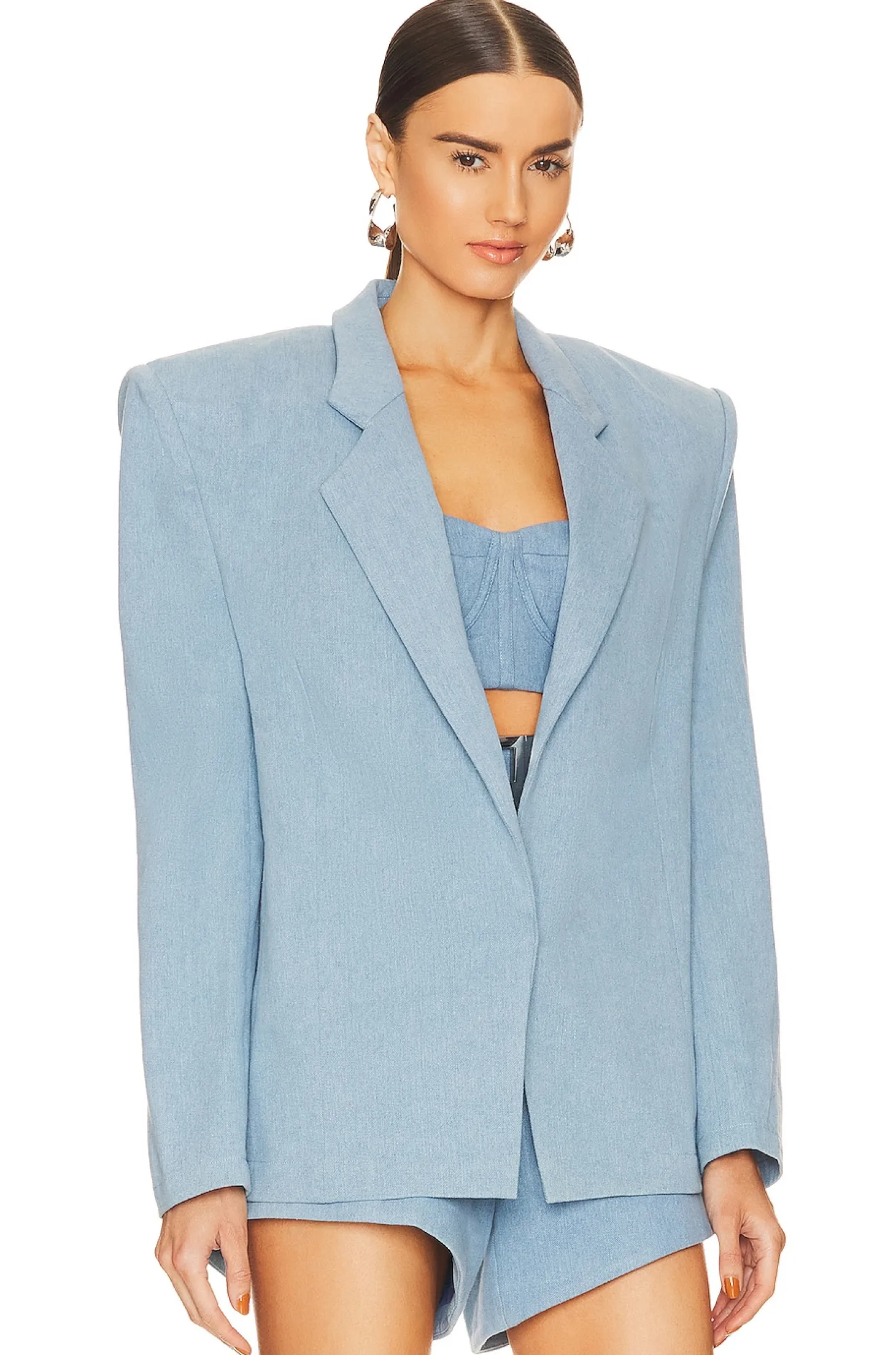 100% cotton.Made in China.Dry clean only.Front snap button closure.Padded shoulders.Midweight linen fabric.Item not sold as set