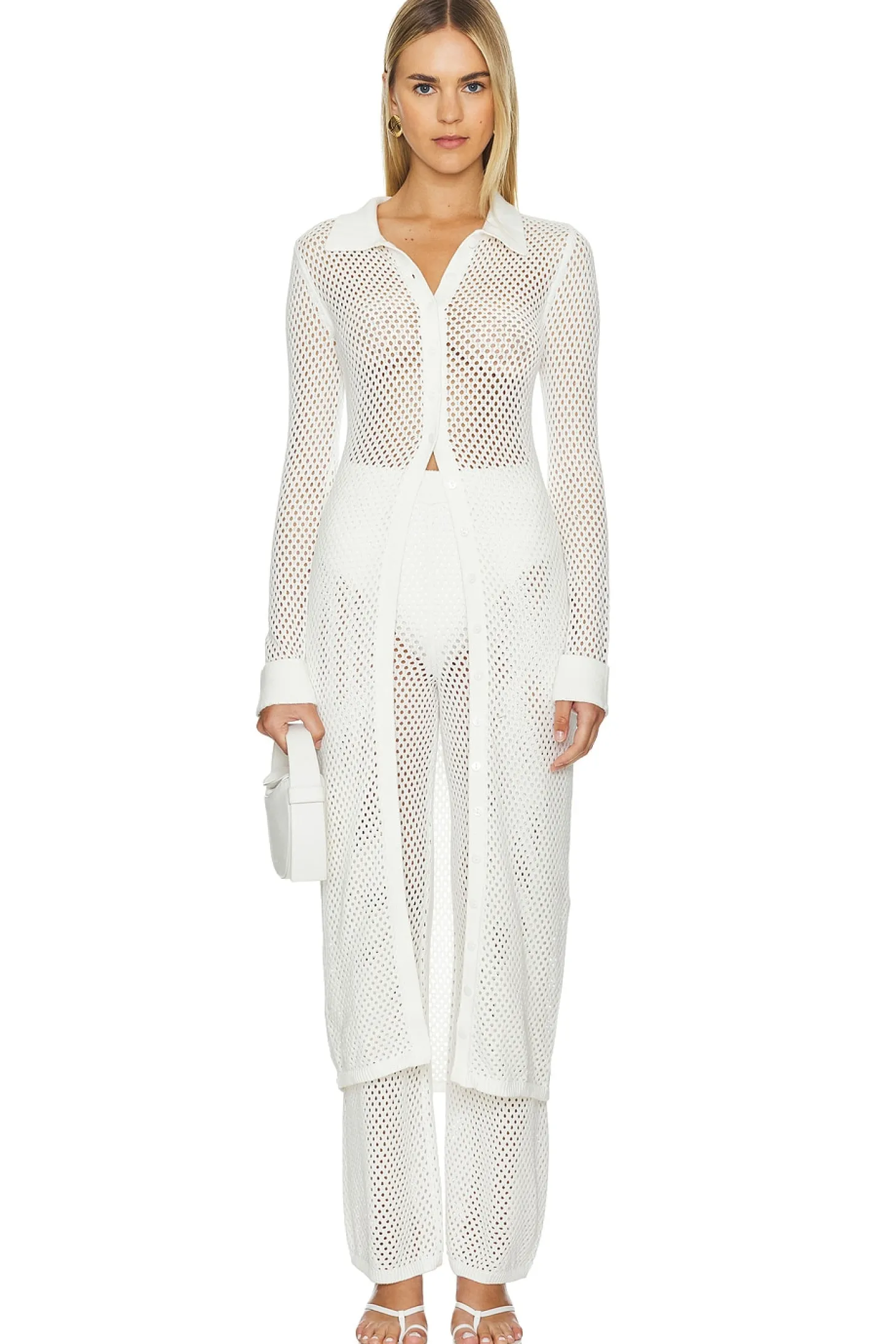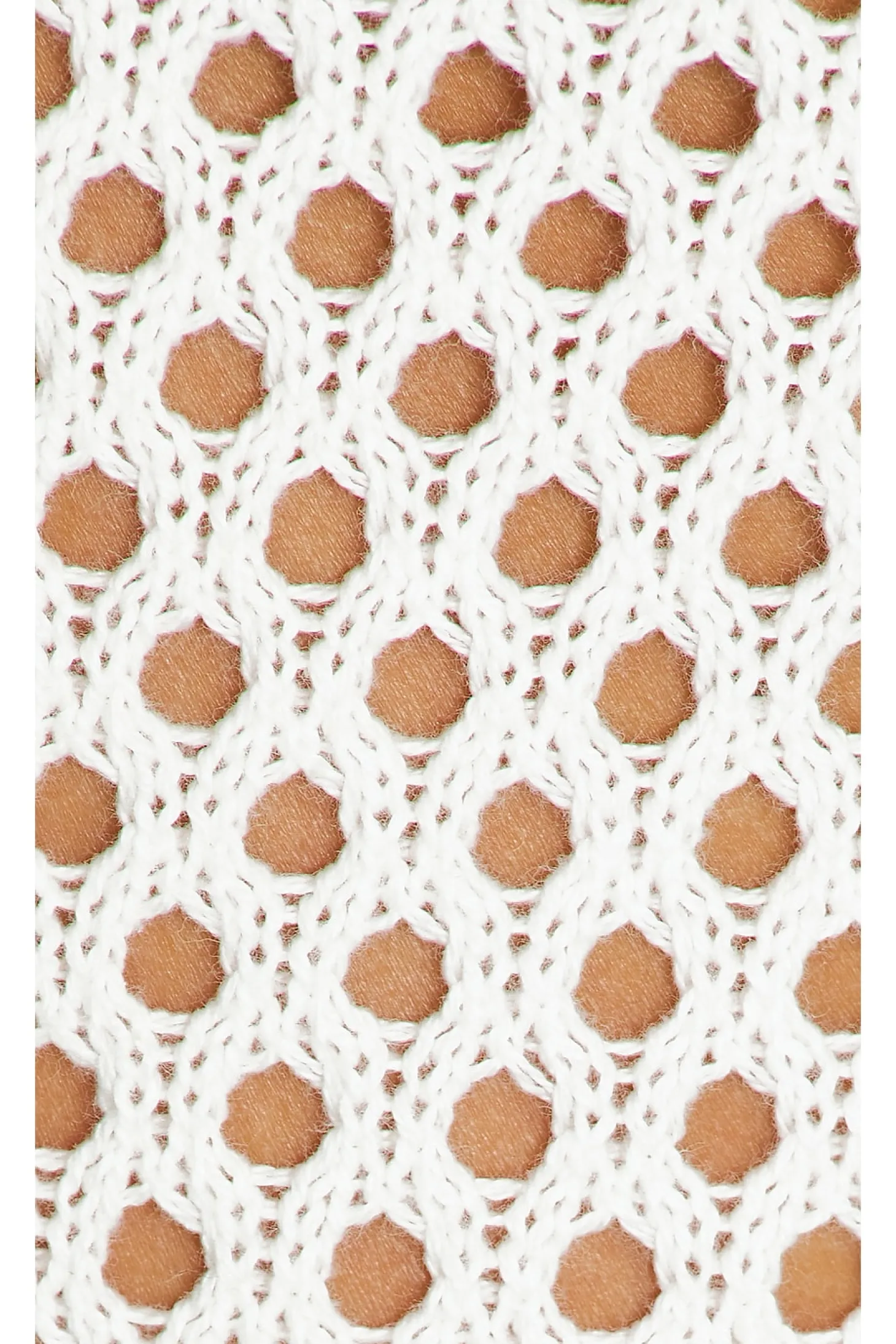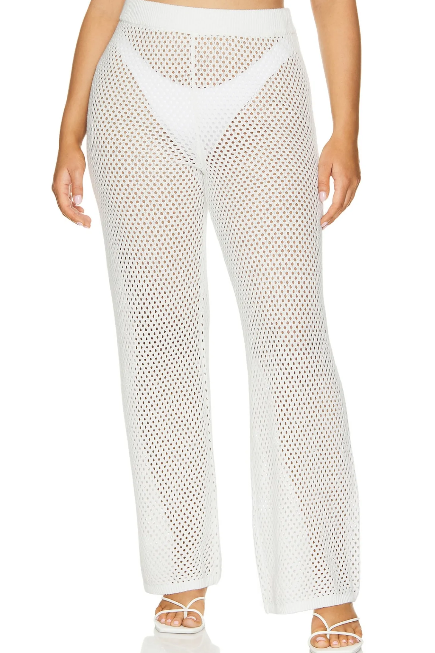 100% cotton.Made in China.Hand wash.Pull-on styling with elastic waistband.Lightweight open knit fabric.Item not sold as a set.Garment is intentionally sheer, undergarments will show through. Please note undergarment not included.20" at the knee and 20" at the leg opening