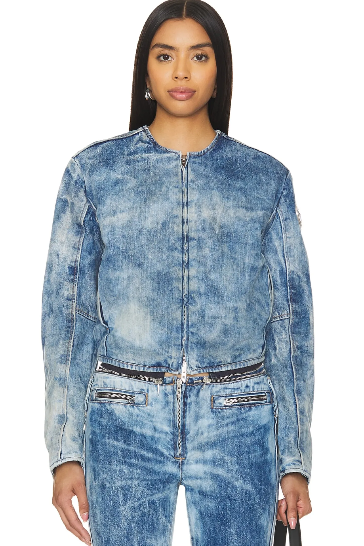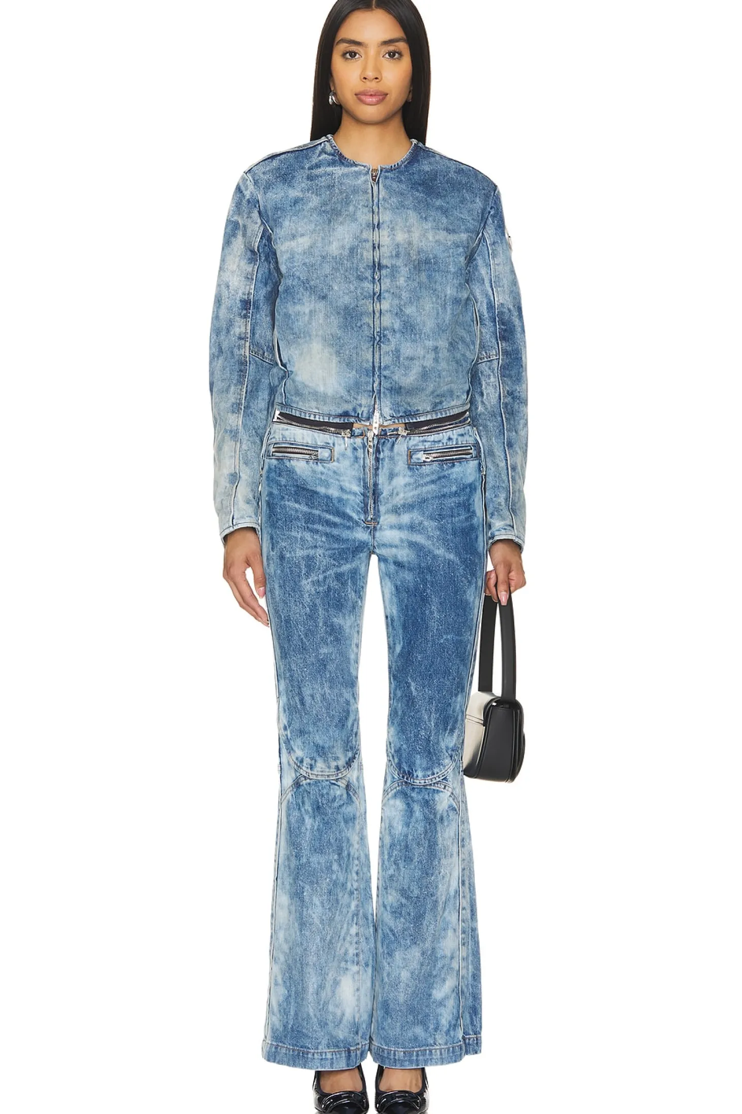 100% cotton.Made in Albania.Machine wash.Hidden front zipper closure.Side slant pocket styling Hidden interior pocket details
