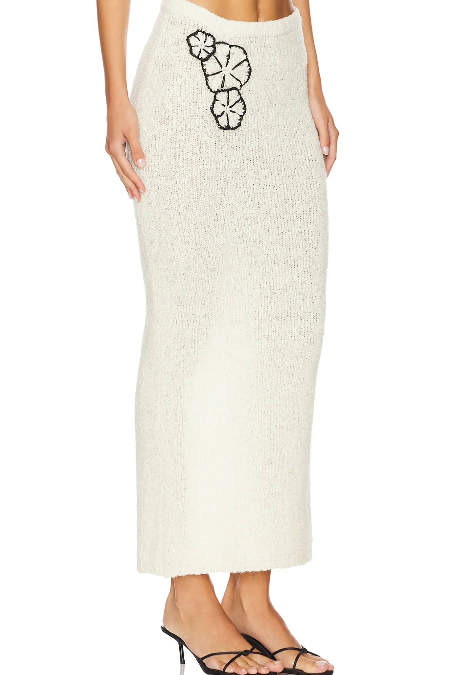 47% merino wool 33% polyamide 19% alpaca 1% metallic fiber.Made in Italy.Hand wash.Unlined.Pull-on styling with elastic waistband.Item not sold as set.Knit fabric with back vent.Skirt measures approx 37" in length