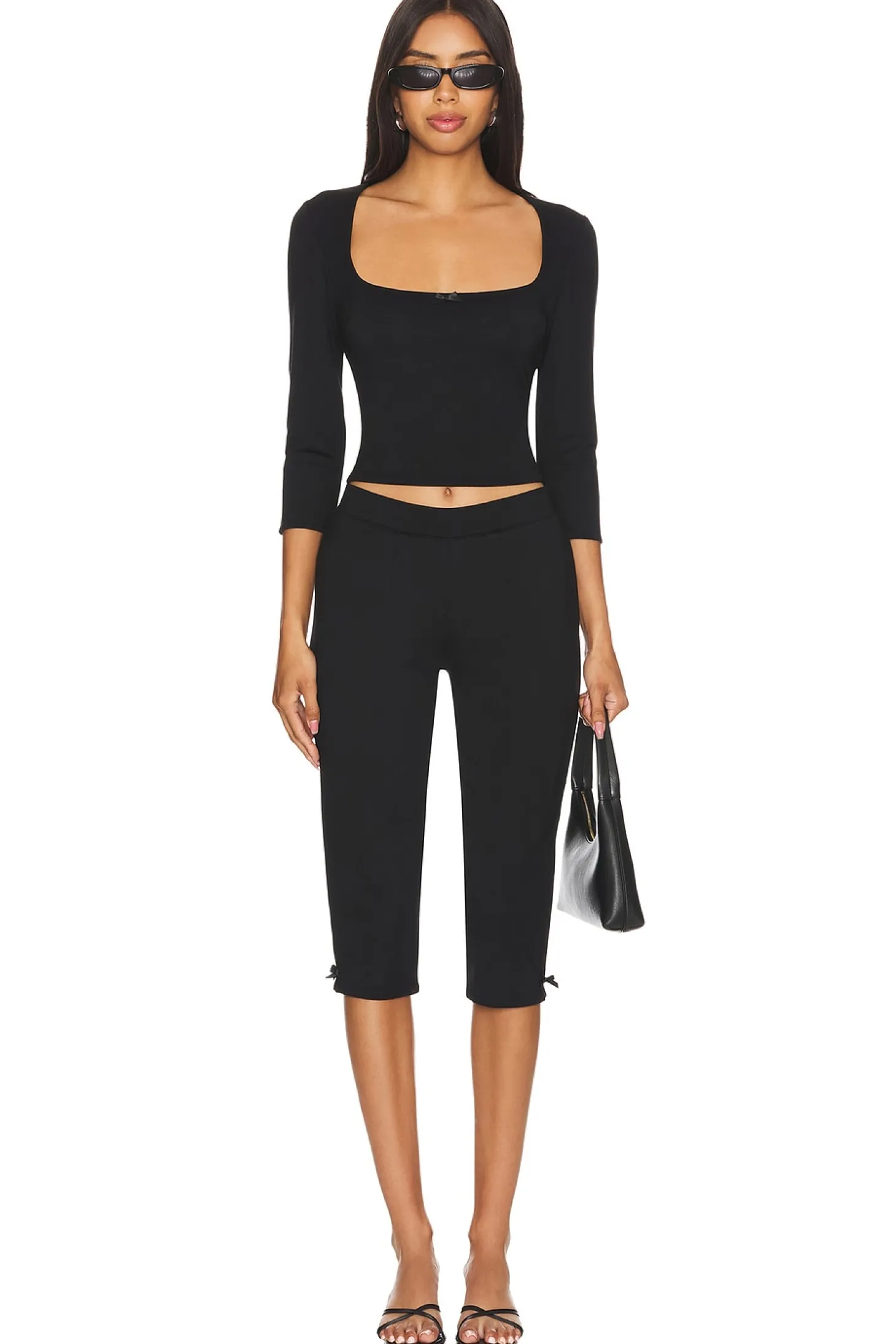 60% rayon 34% nylon 6% spandex.Made in China.Hand wash.Pull-on styling with elastic waistband.Bow detail at hem.Jersey stretch fabric