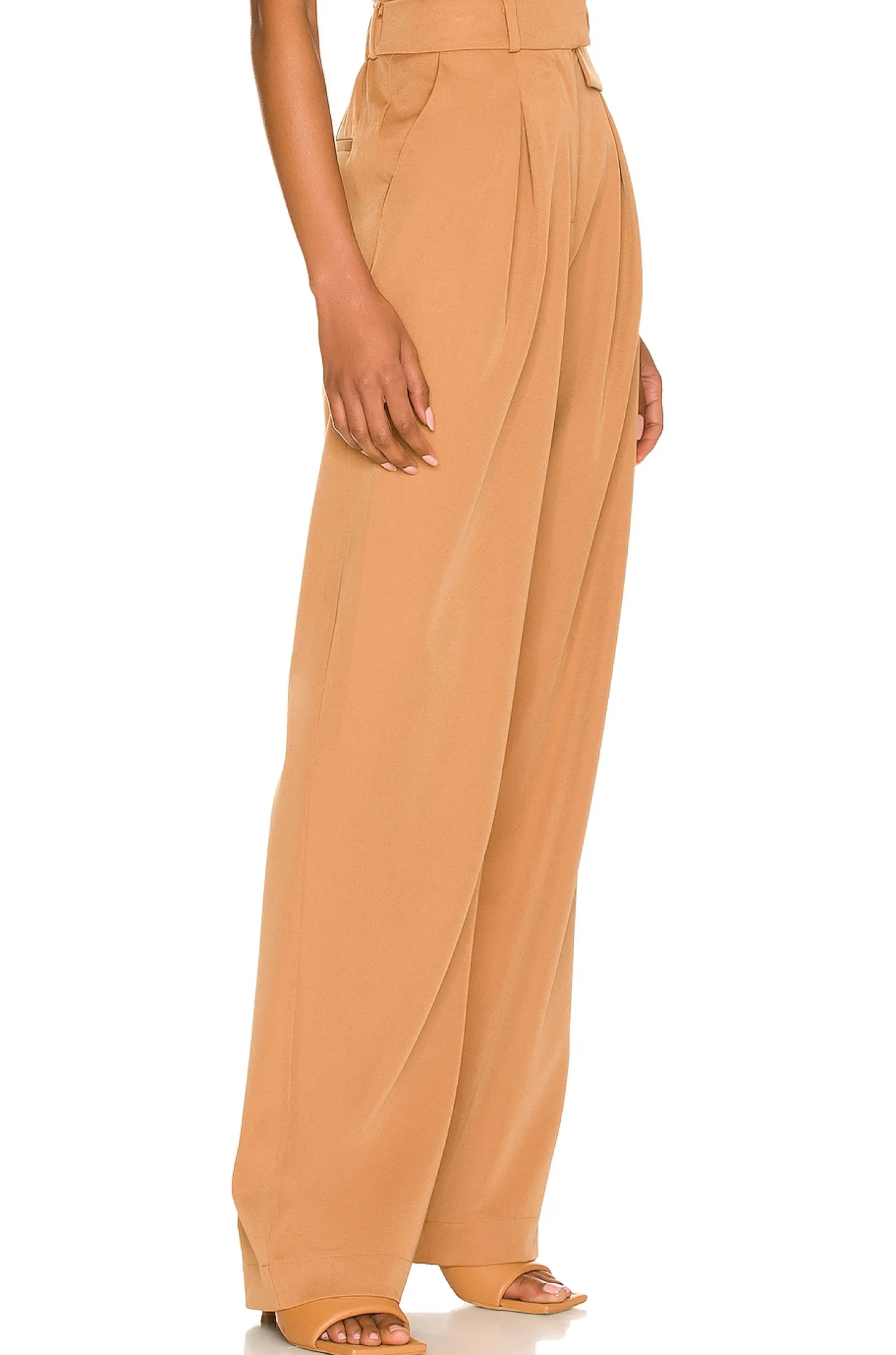 Self: 93% poly 7% spandex Lining: 97% poly 3% spandex.Made in China.Hand wash.Zip fly with hook and bar closure.Elastic back waistband.Side slant and back slip pockets.Pleated front detail.20" at the knee narrows to 18.5" at the leg opening