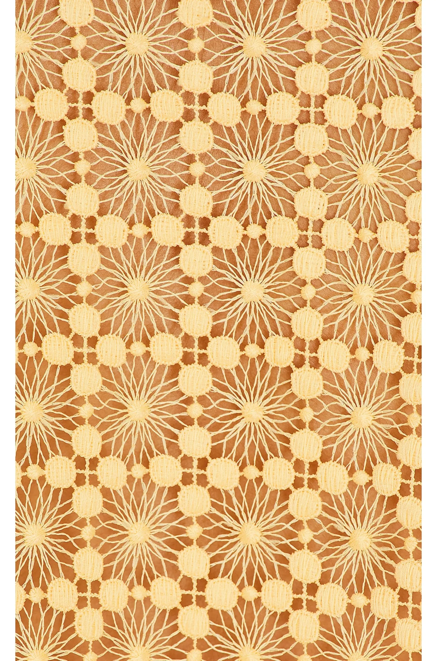 100% polyester.Made in China.Hand wash.Front button closure.Open knit floral lace fabric.Garment is intentionally sheer, undergarments will show through.Please note undergarment not included