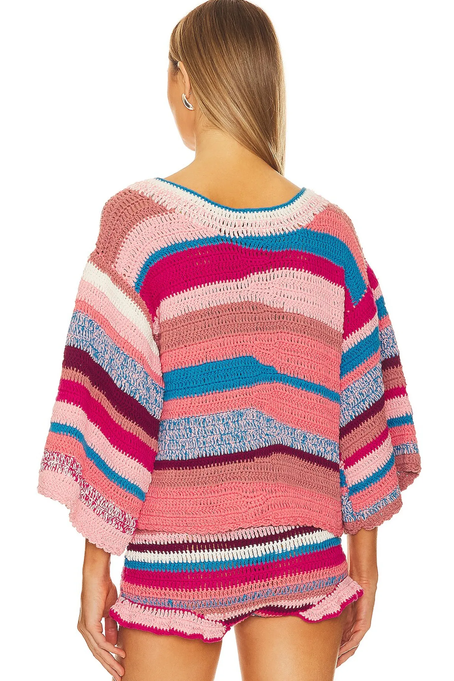 100% cotton .Made in Indonesia.Hand wash cold.Midweight crochet fabric.Item not sold as a set