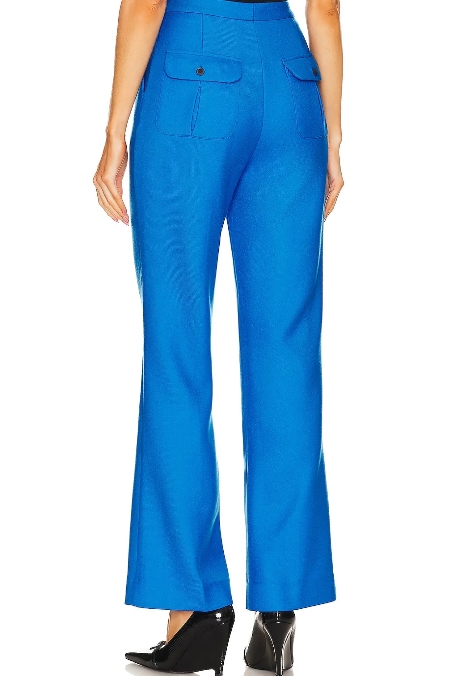 Self: 50% wool 50% wool Lining: 100% polyester.Made in China.Dry clean only.Zip fly with hook and bar closure.Side slant and back slip pockets.Suiting fabric.Item not sold as a set.16" at the knee breaks to 18" at the leg opening