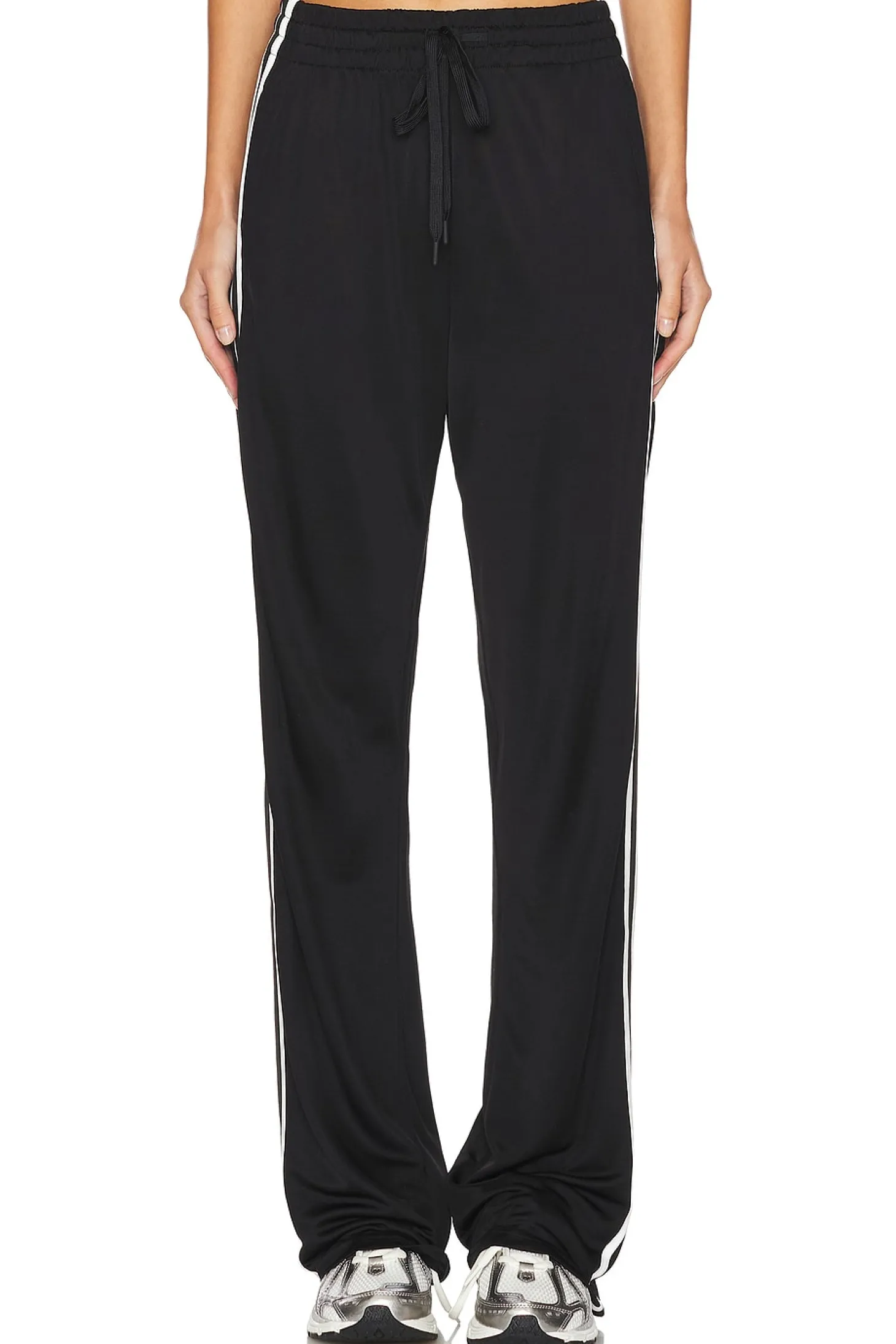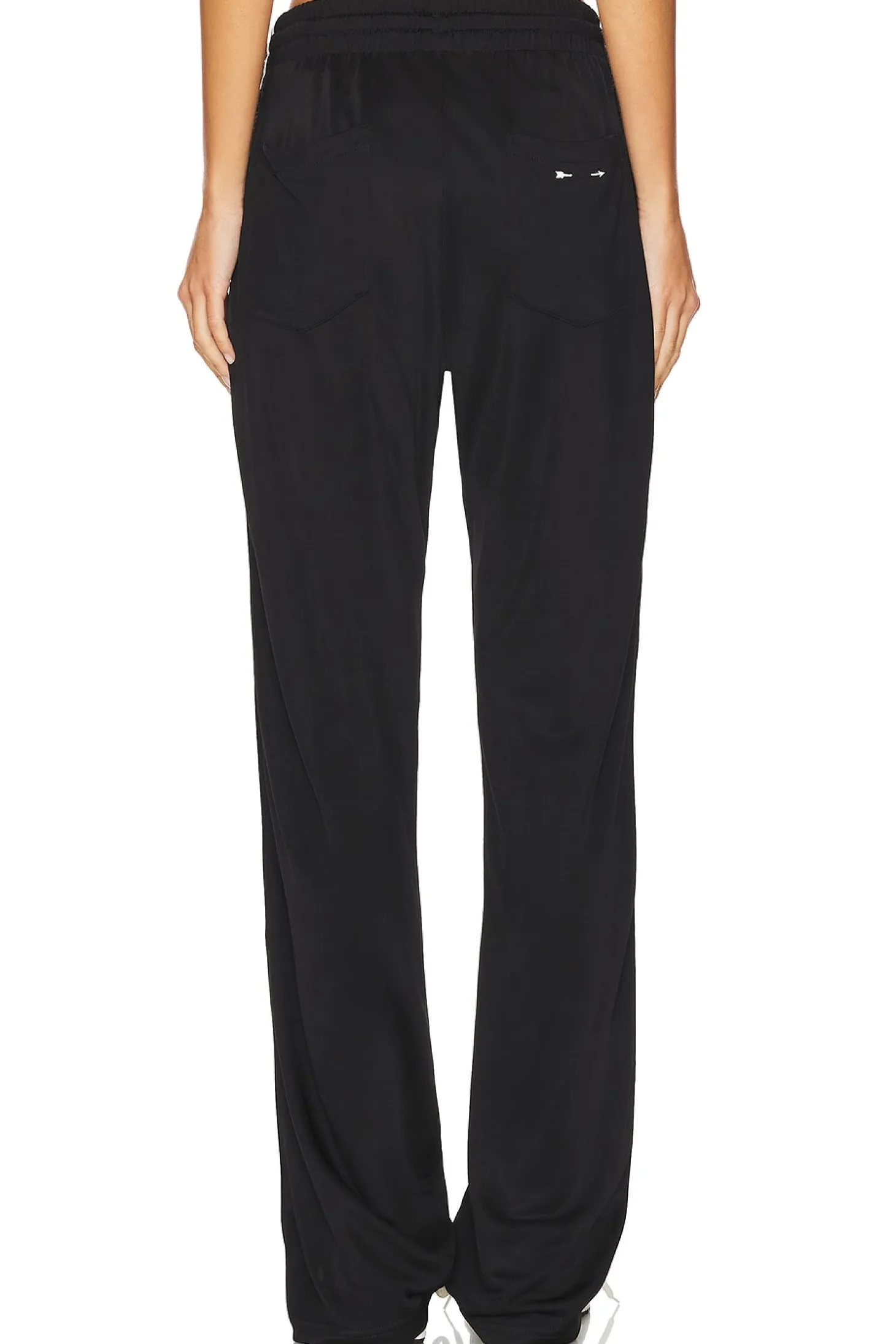 41% viscose 45% rayon 14% nylon.Made in China.Machine wash.Drawstring closure.Elasticized waistband Side seam pockets and back slip pockets.Midweight jersey fabric.20" at the knee narrows to 18" at the leg opening