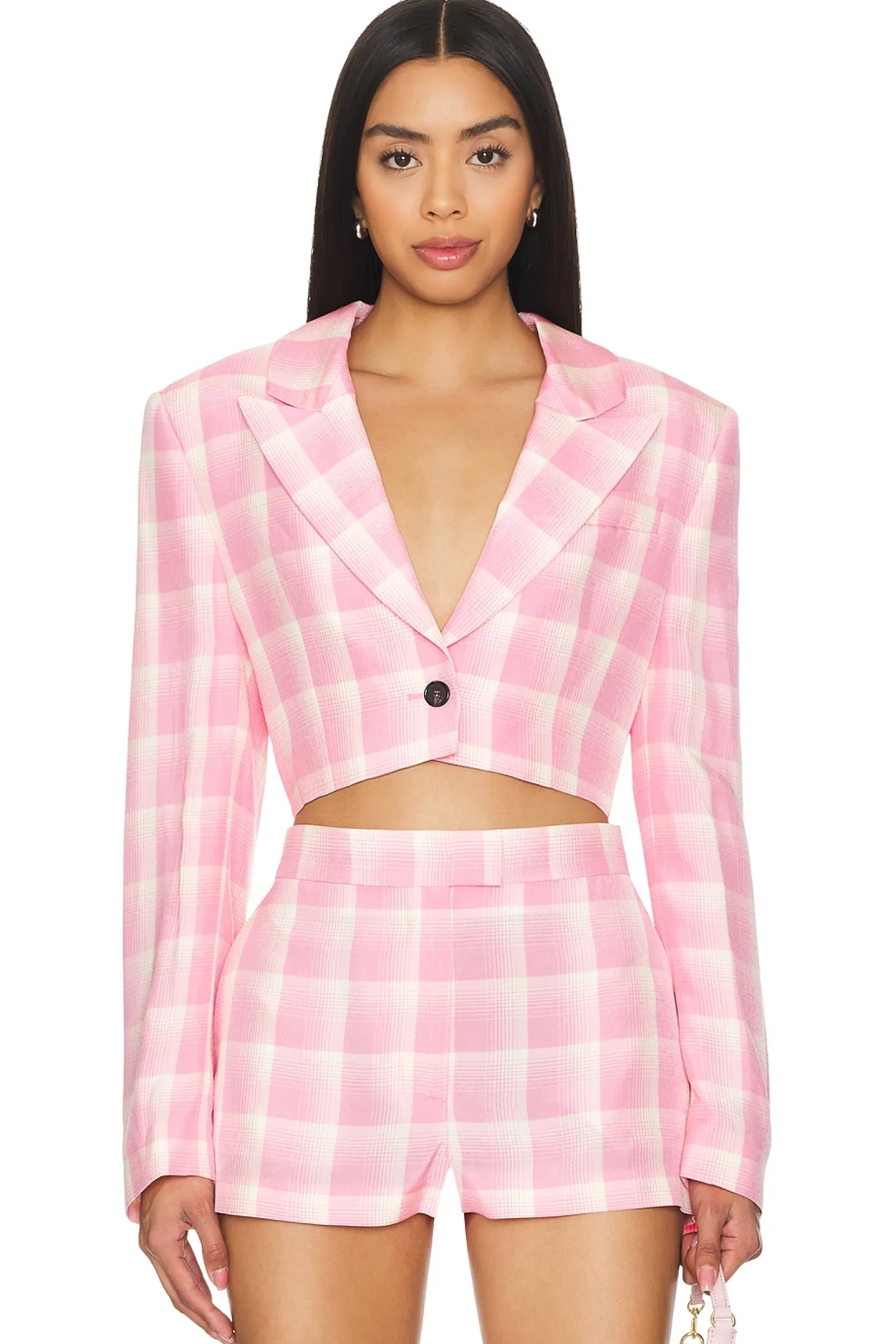100% viscose.Made in Italy.Dry clean only.Front singular button closure.Padding at shoulder with buttoned cuff.Cropped design.Item not sold as a set