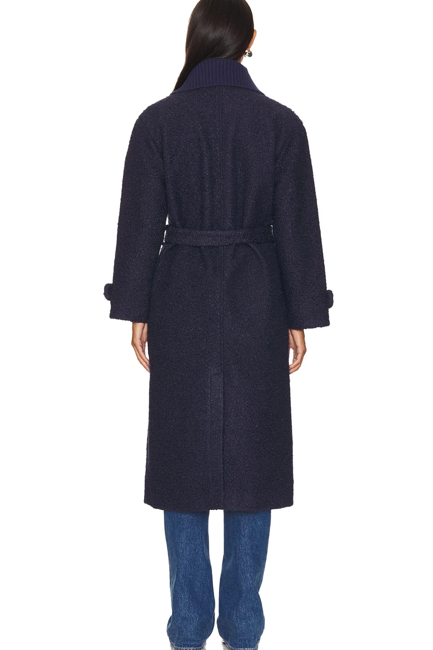 Self & Lining: 100% polyester Trim: 45% acrylic 30% nylon 25% polyester.Made in China.Dry clean only.Front button closure.Adjustable waist tie closure and button cuffs.Front slant welt pockets and notched lapel collar Heavyweight faux fur fabric