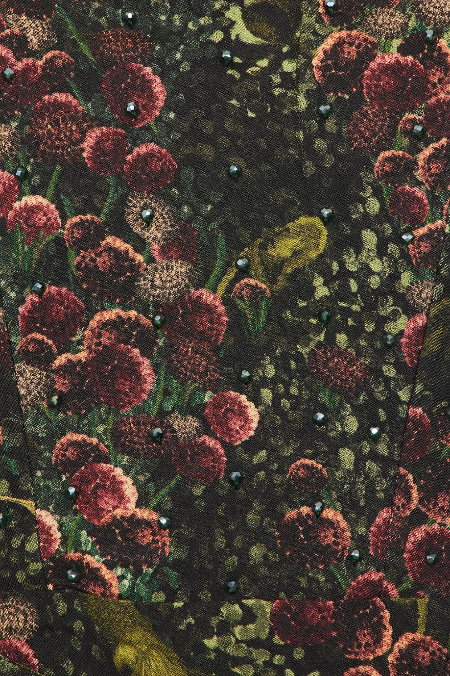 100% viscose.Made in Colombia.Dry clean only.Unlined.Hidden back zipper closure.Wrap tie styling.Midweight satin fabric with crystal embellishments throughout