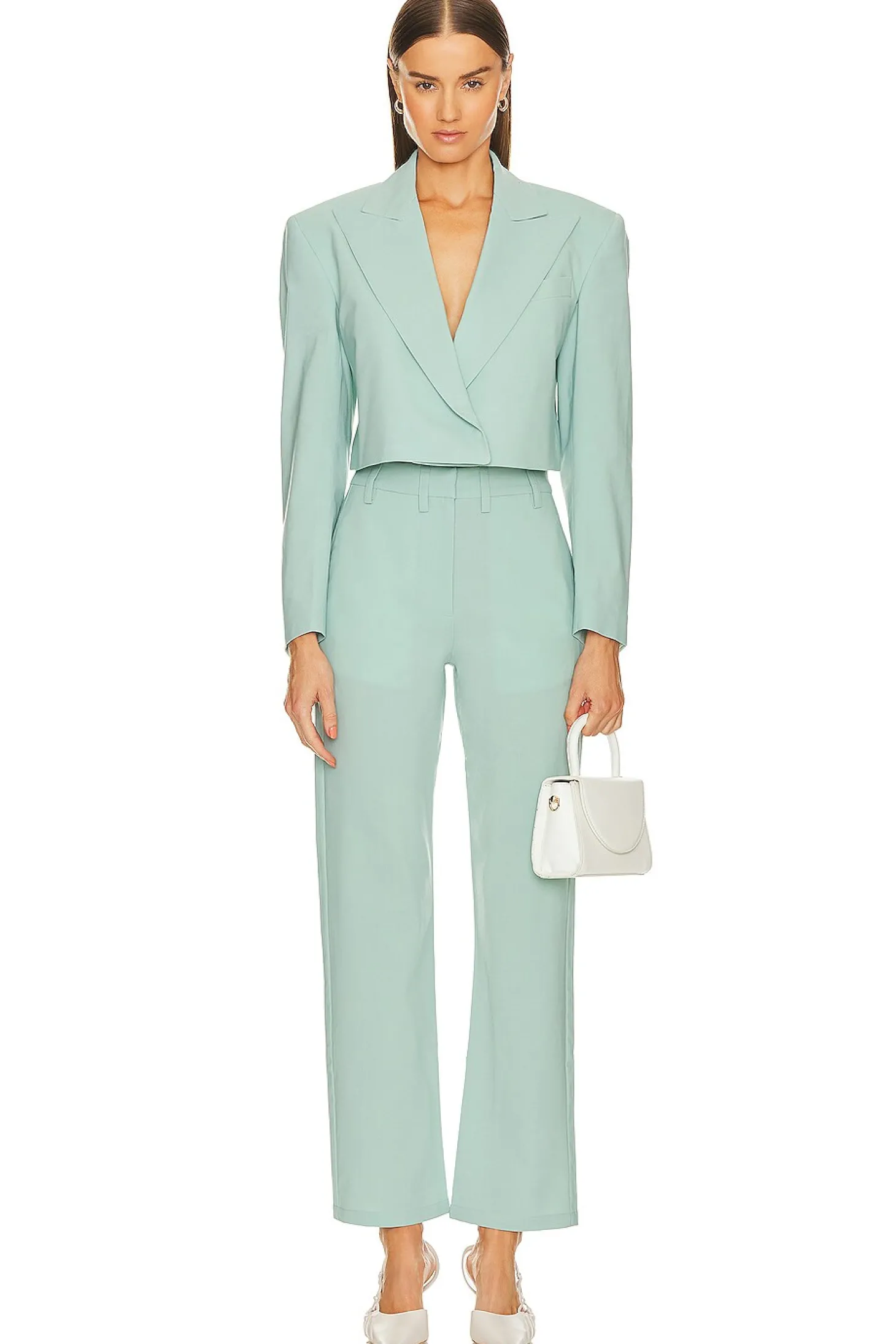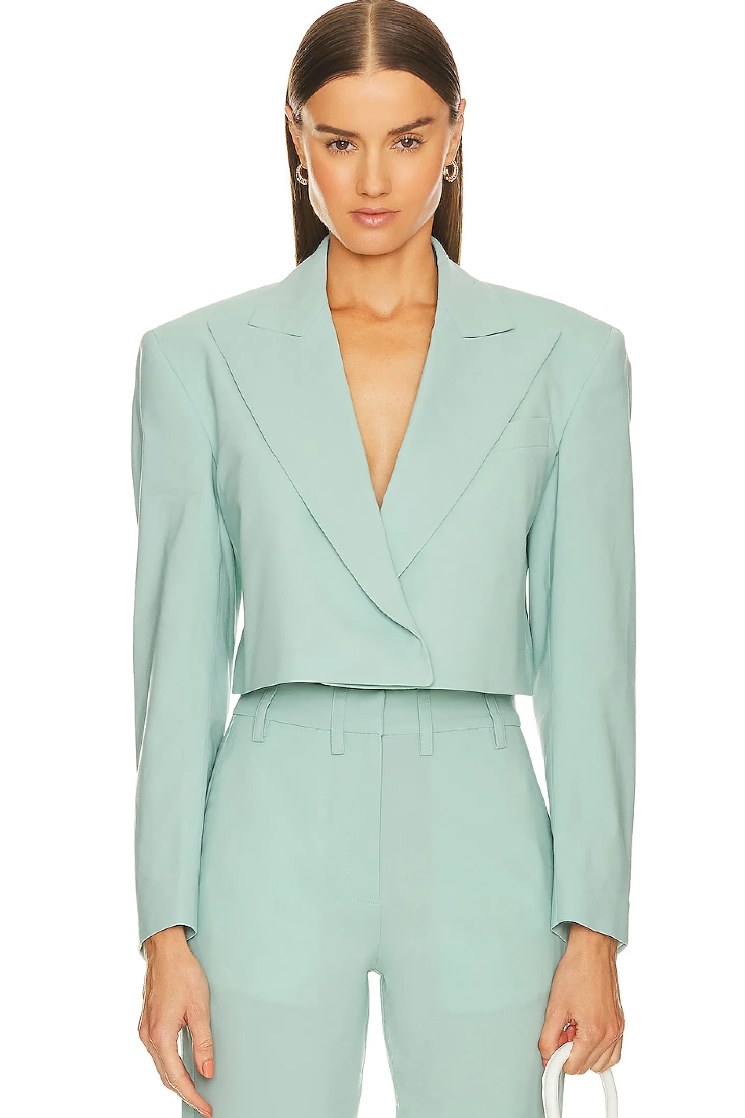 Cotton blend fabric.Made in Portugal.Hand wash.Singular button closure.Padded shoulders with button cuffs.Twill suiting fabric with breast tab pocket.Item not sold as set