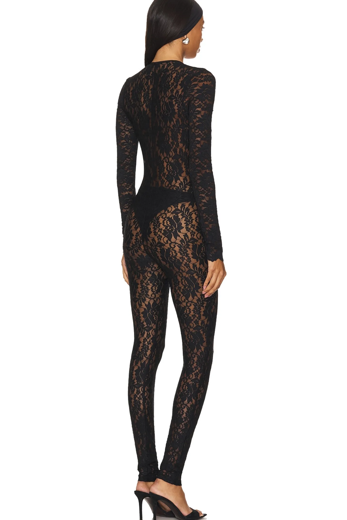 90% nylon 10% elastane.Made in China.Hand wash.Pull-on styling.Deep v-neck with single clasp closure.Floral lace fabric.Garment is intentionally sheer, undergarments will show through. Please note undergarment not included