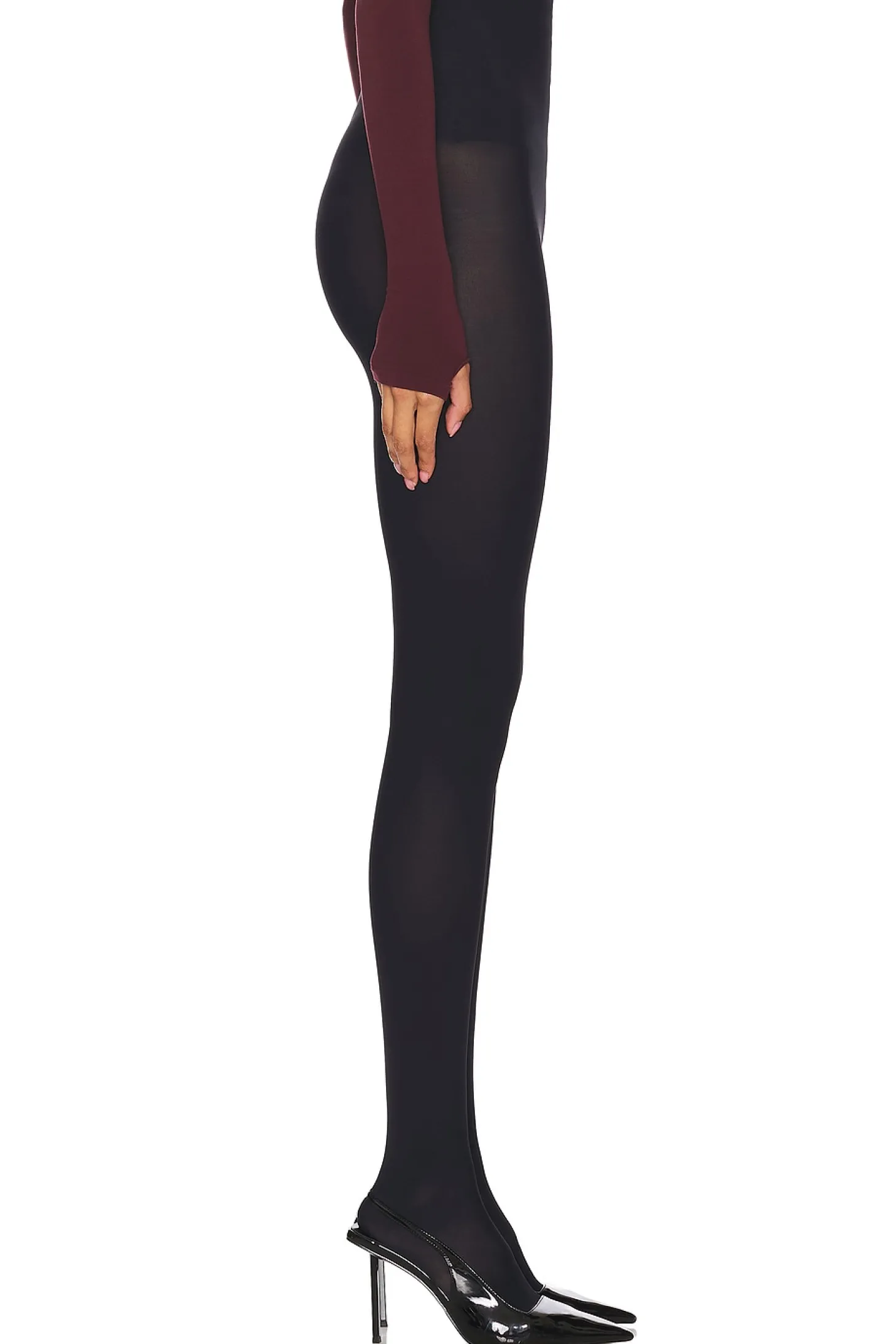 Self: 78% nylon 22% elastane Lining: 72% nylon 28% elastane.Made in USA.Machine wash.Pull-on styling with elastic waistband.Full leg design.Lightweight jersey fabric.Garment is made with a semi-sheer fabric, undergarments can show through