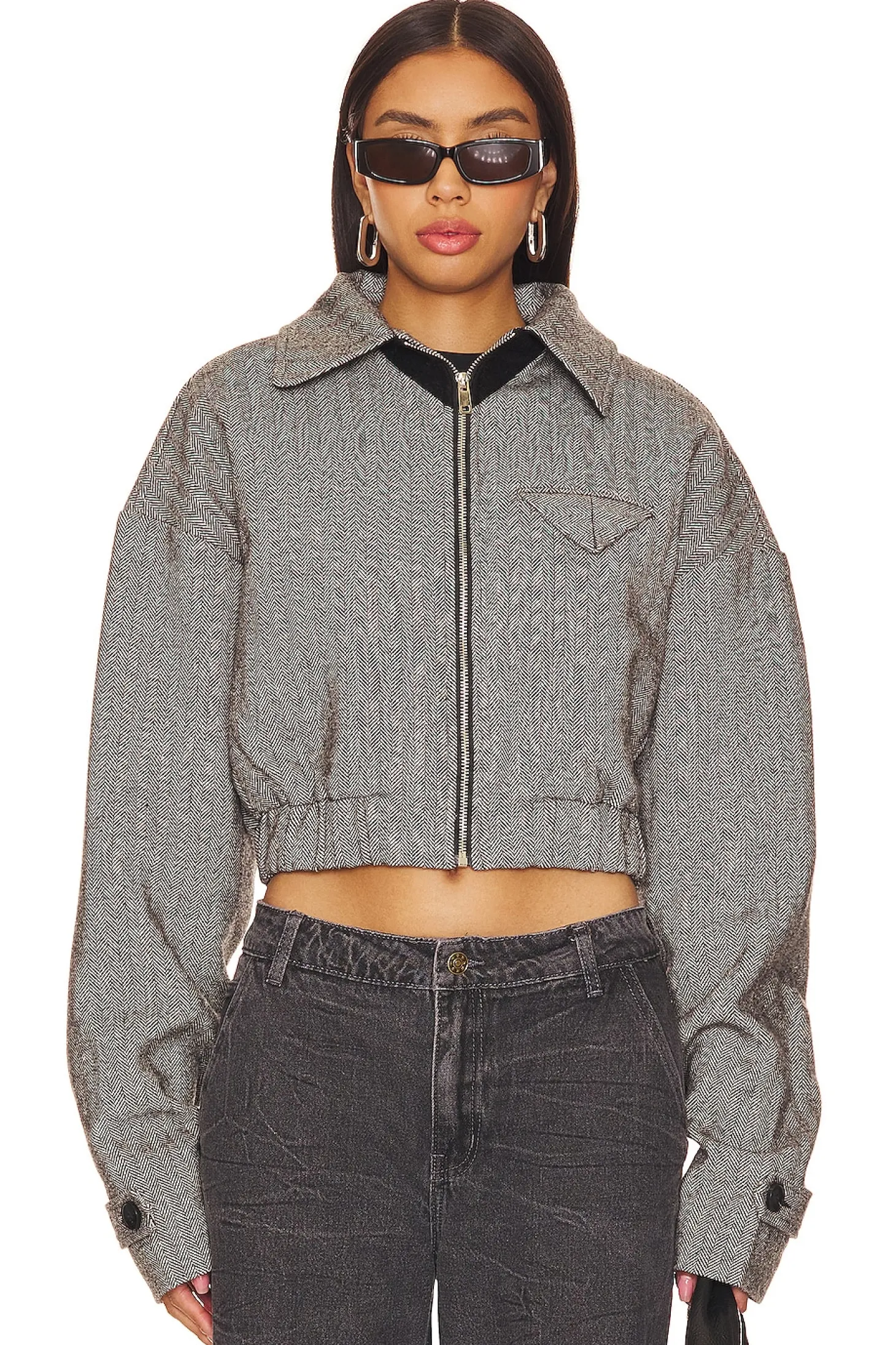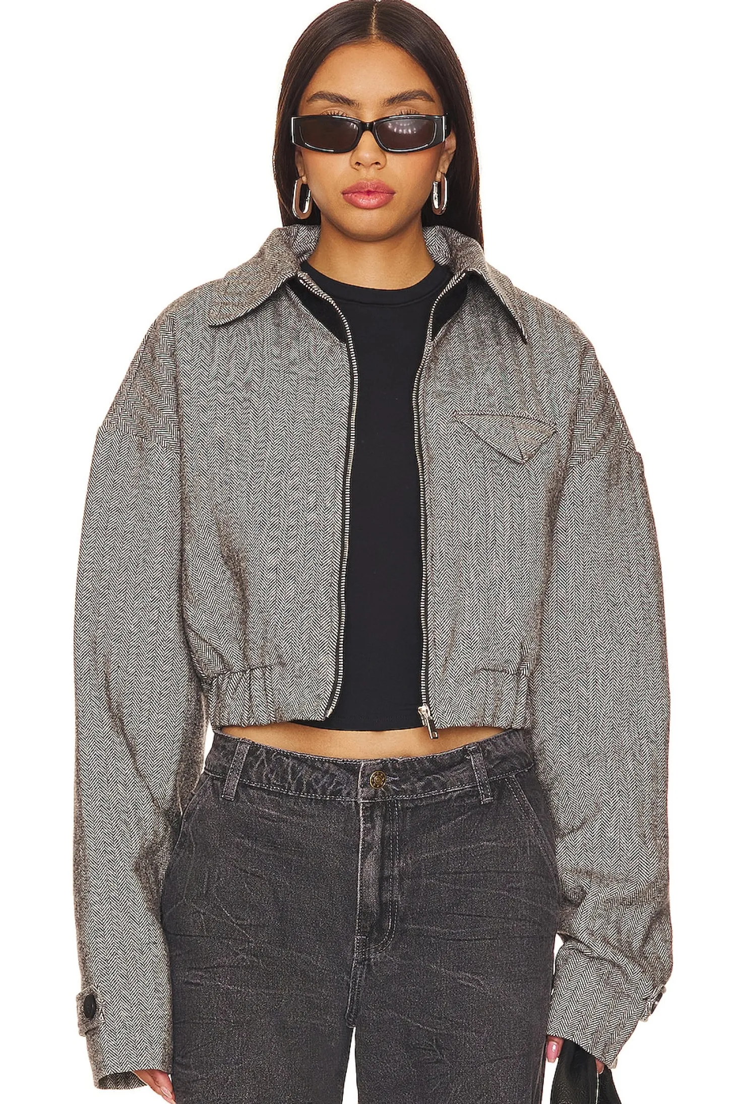 100% polyester.Made in China.Dry clean only.Front zipper closure.Side slip pockets.Flap pocket at breast.Midweight tweed fabric.The Claude tweed jacket from Lioness is an easy throw-on style that pairs well with a white tee and denim.