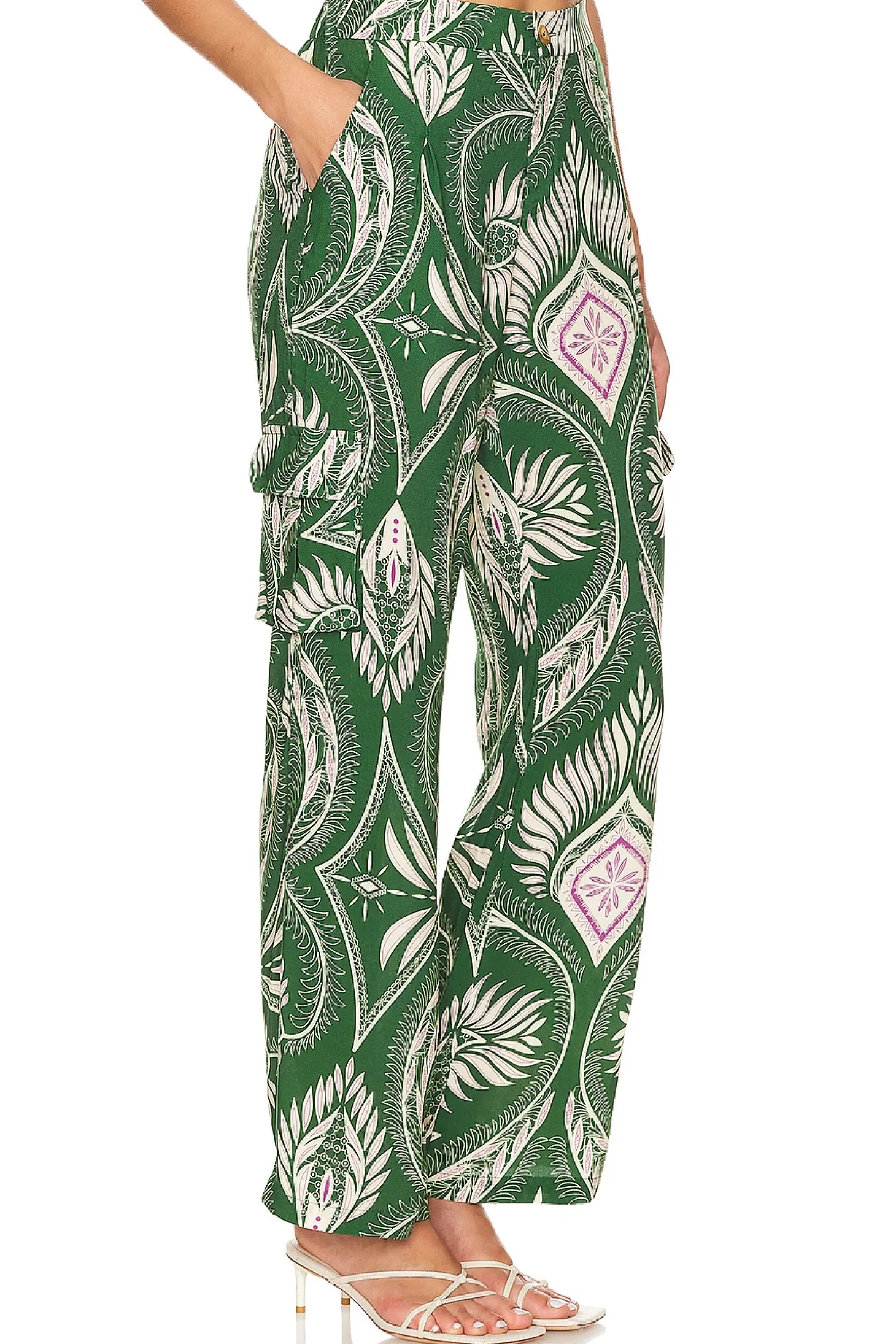Self: 100% viscose.Made in Columbia.Hand wash.Zip fly with button closure.18" at the knee and 20.5" at the leg opening