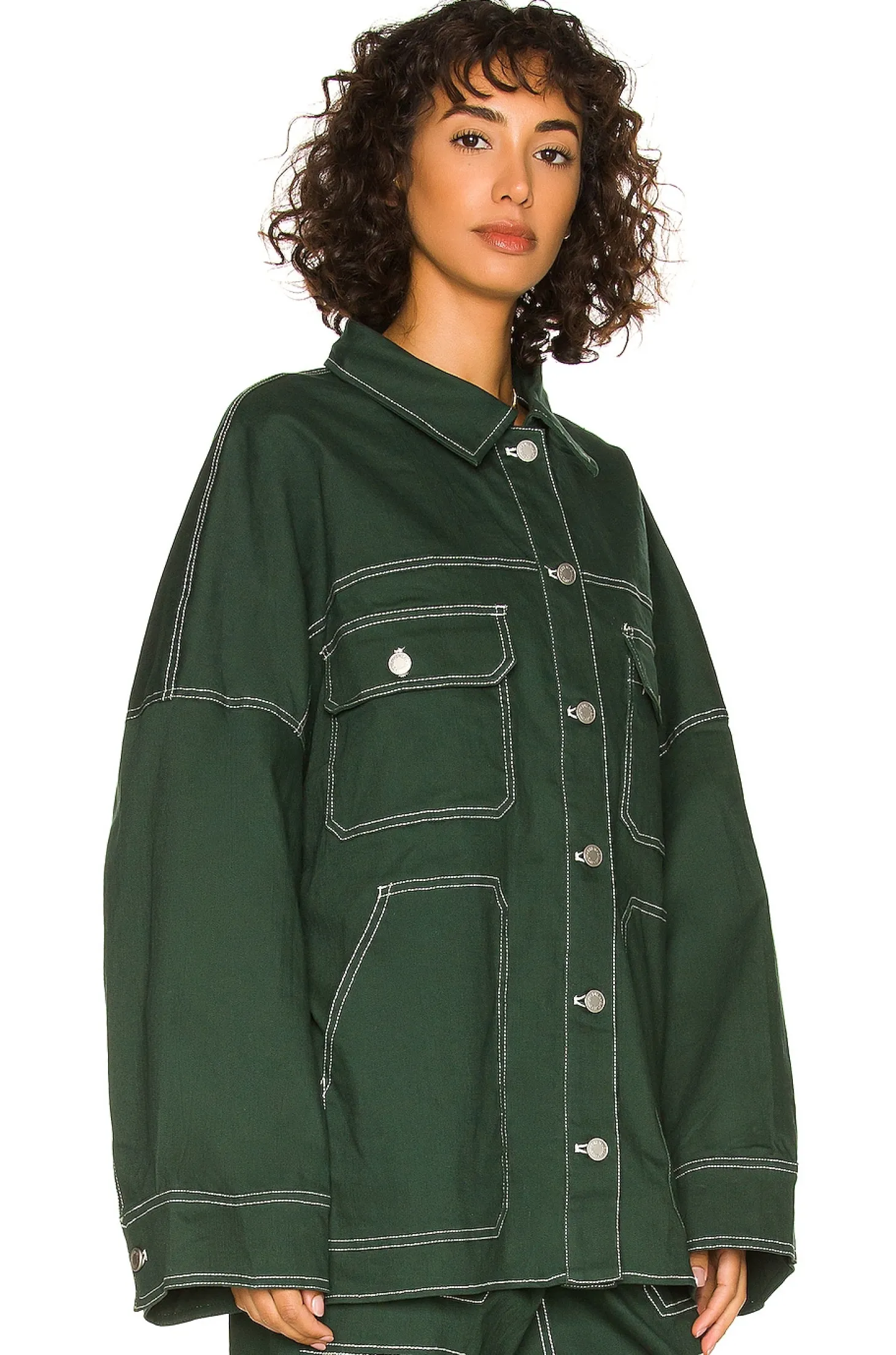 97% cotton 3% elastane.Made in China.Dry clean only.Front button closure.Breast flap pocket with button closure.Side slant pocket.Buttoned cuffs White contrast trim detail.Item not sold as a set