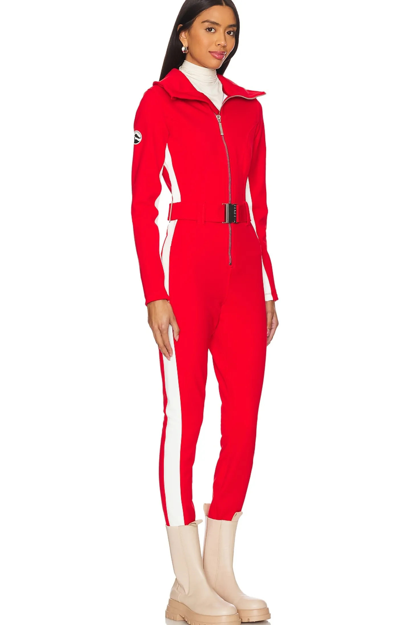58% polyamide 32% poly 10% elastane.Made in Portugal.Machine wash.Front zip closure.Detachable waist belt with silver-tone buckle closure.Zip pocket at sleeve Leather logo patch at shoulder.OEKO-TEX certified for safety and freedom from ecological pollutants Waterproof membrane