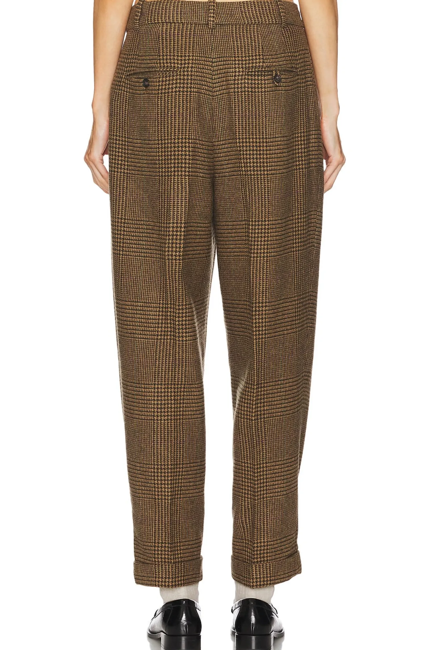 Self: 53% wool 23% cotton 20% polyamide 4% other fibers Lining: 100% viscose.Made in Portugal.Dry clean only.Zip fly with hook and bar closure.4-pocket design.Lightweight tweed fabric with cuffed hem.Item not sold as set.23" at the knee narrows to 15" at the leg opening