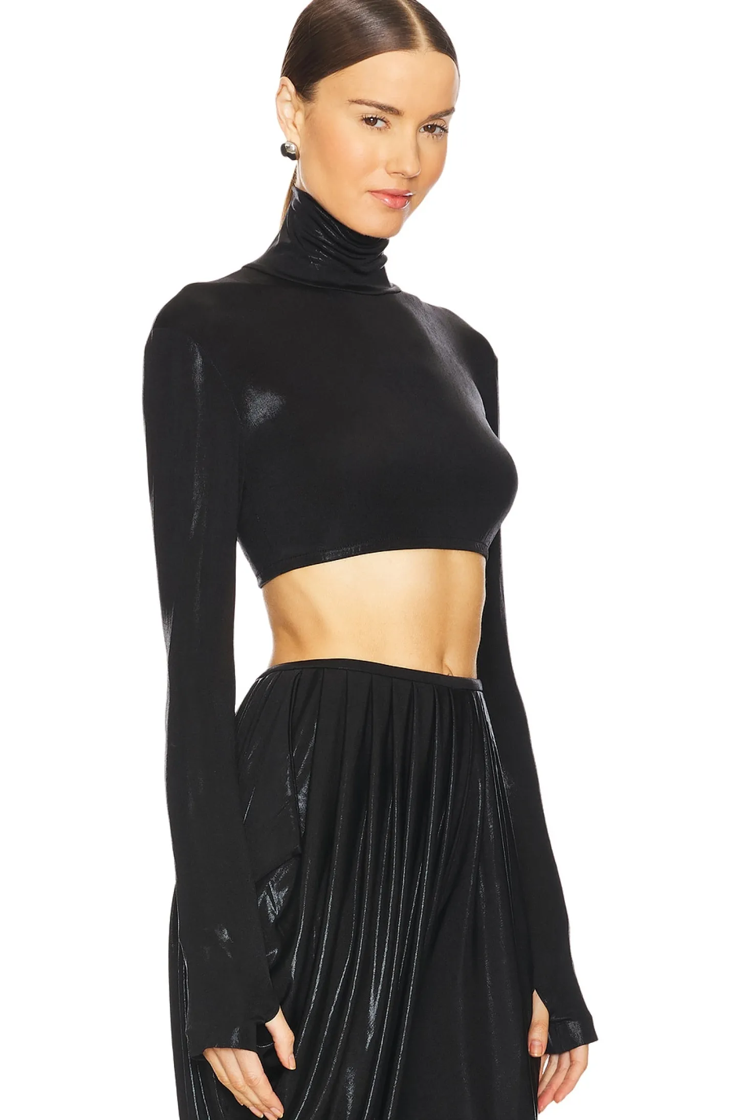 Cropped Slim Fit Long Sleeve Turtleneck Top