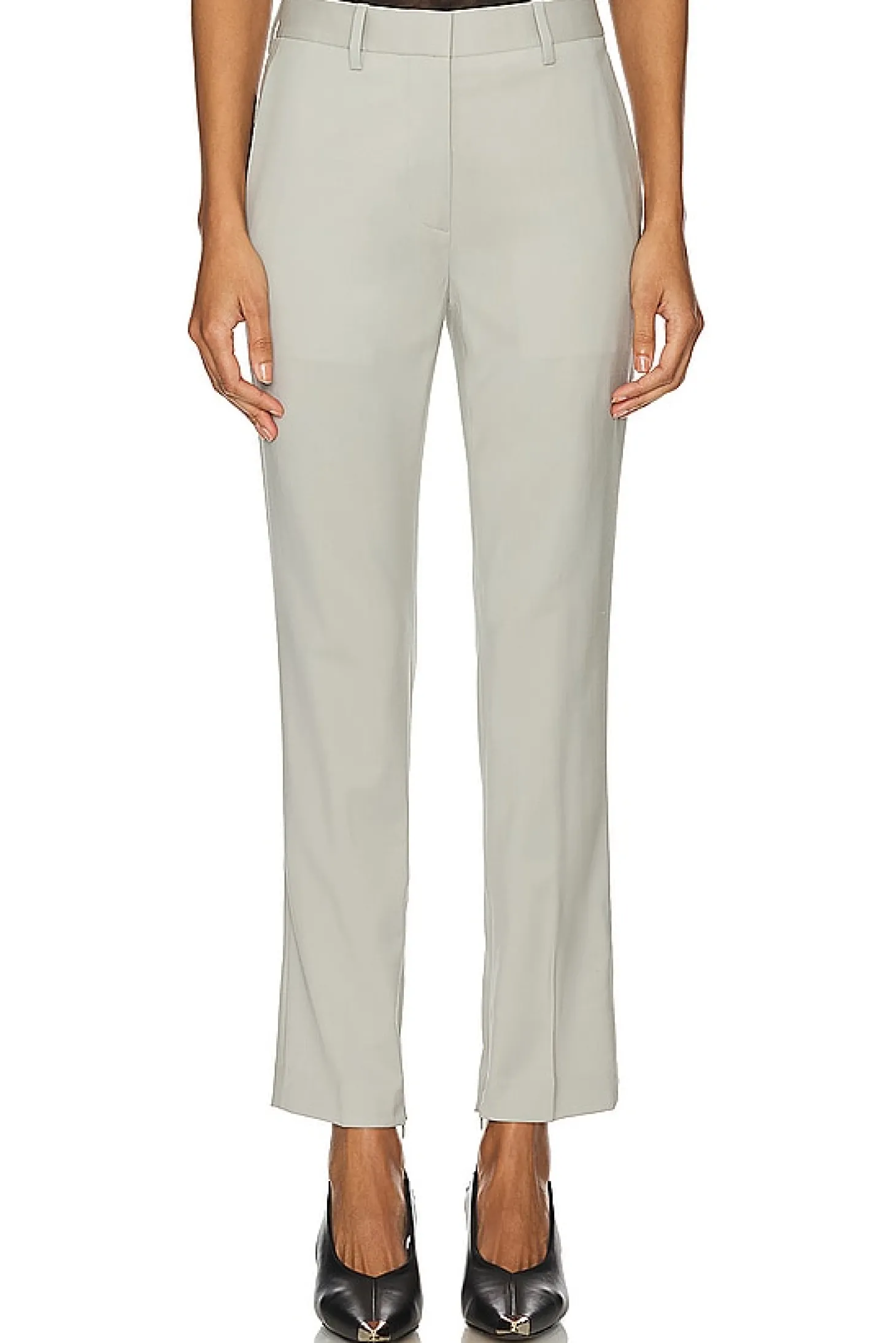 Self: 100% virgin wool Pocketing: 100% polyester.Made in China.Dry clean only.15" at the knee narrows to 14" at the leg opening